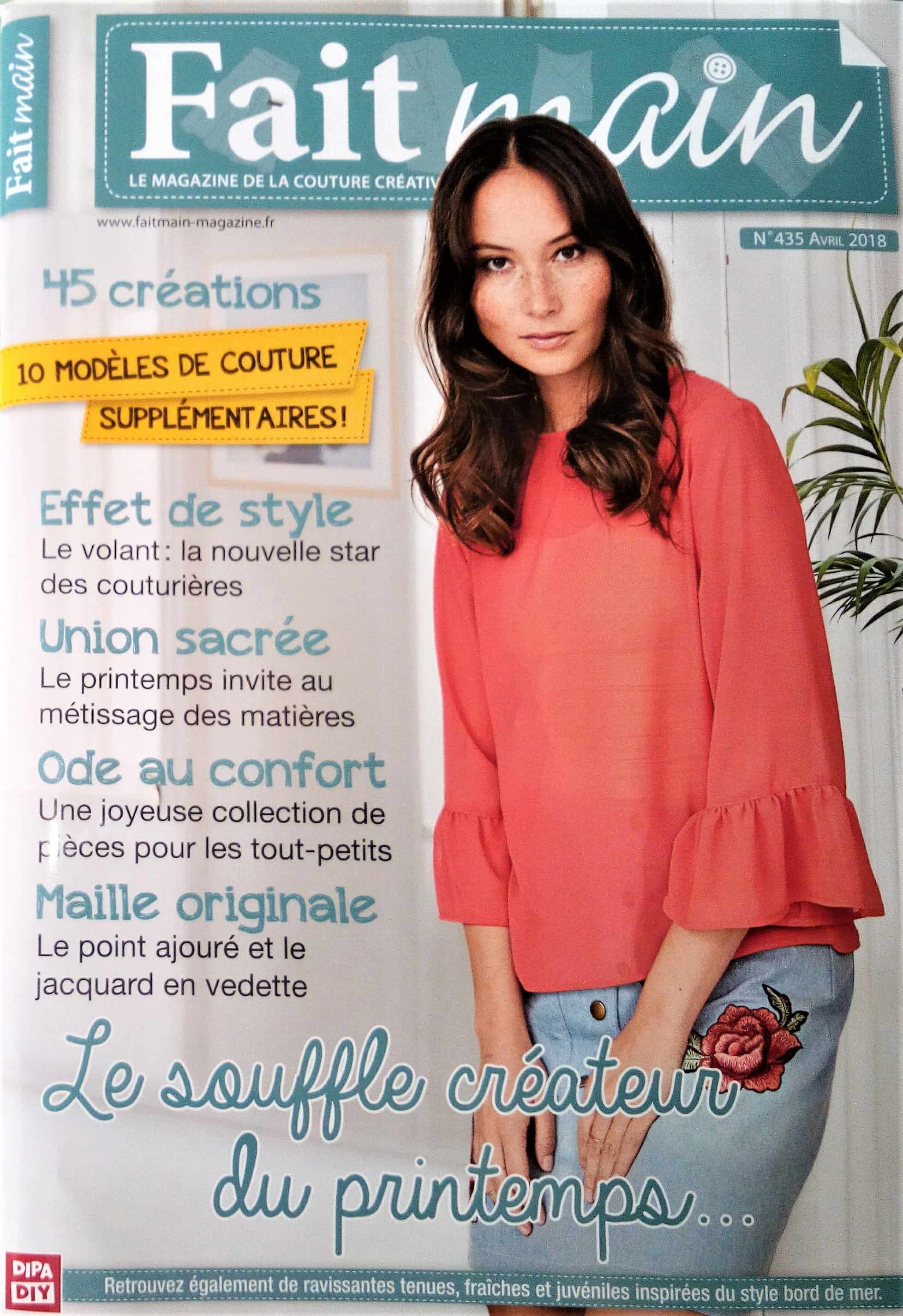 Aujourd’hui ma revue de presse sera consacrée au dernier magazine « Fait Main ». Il s’agit du numéro 435 d’Avril 2018.
