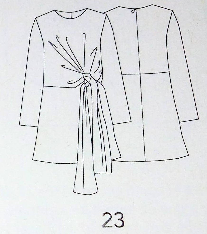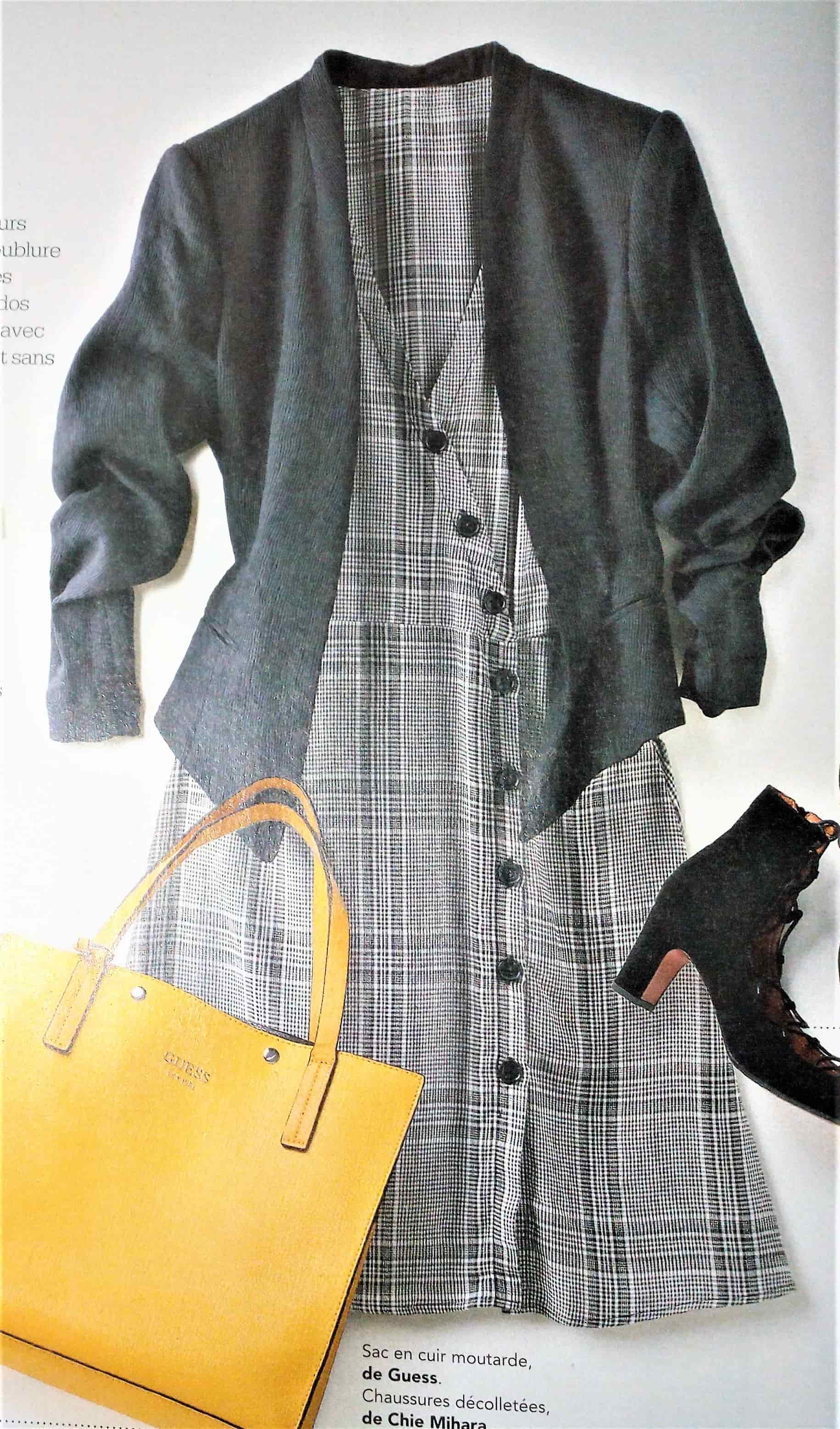 J’adore ce « Blouson Noué », il se ferme dans le dos à l’aide d’une fermeture à glissière. Sa particularité est ce gros nœud sur le devant. Il n’a pas de difficultés particulières il est même estampillé « Couture facile ». Il est en taille 40 – 44 – 48.