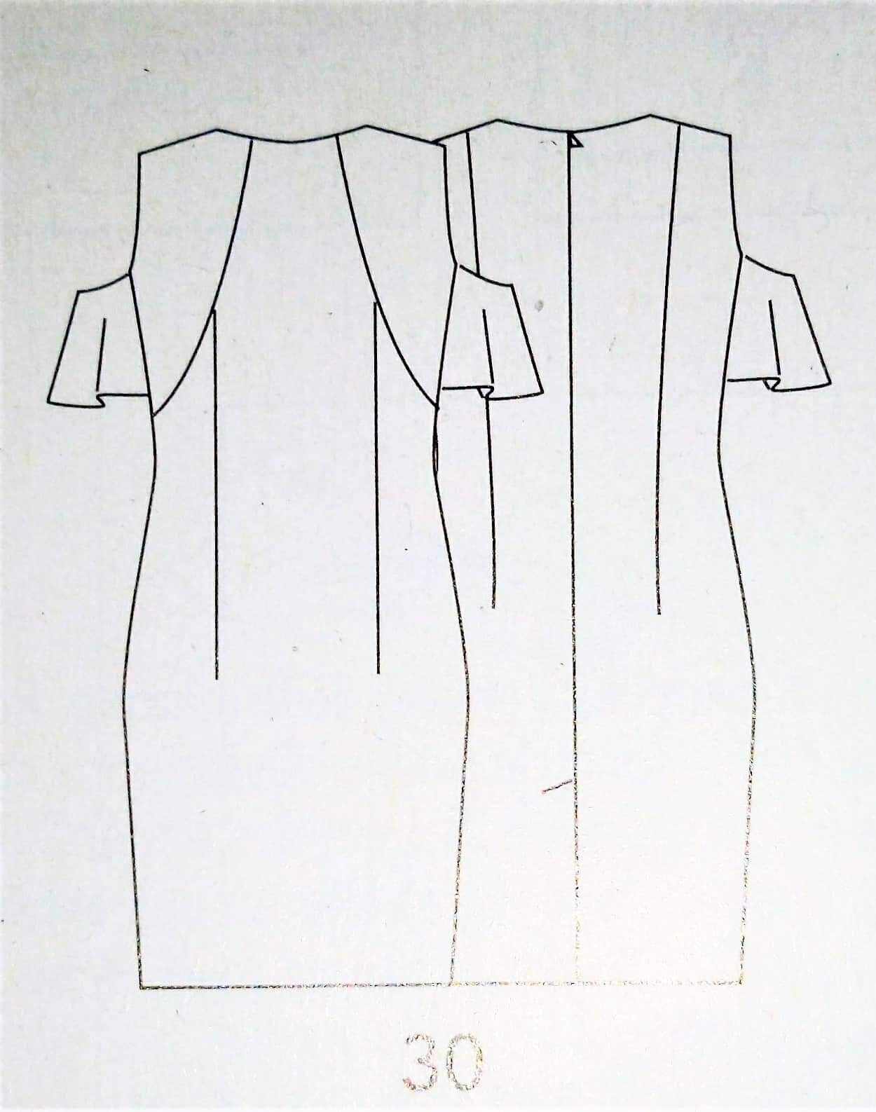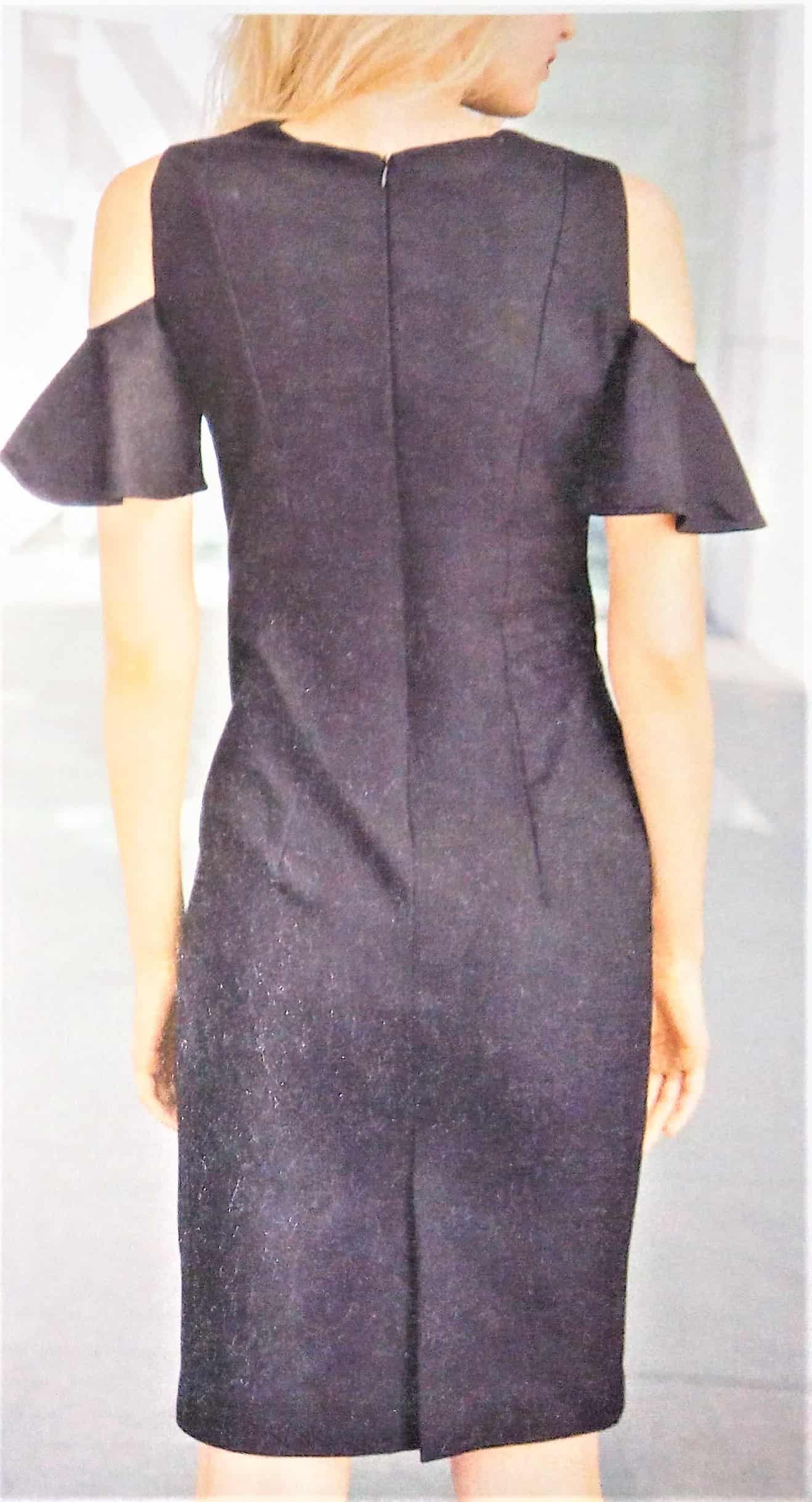 Voici une superbe robe, très élégante . Les manches tombantes dégagent les épaules et sont très féminines! La robe est cintrée à l’aide de grandes pinces dans le dos et le devant, ainsi que des découpes sur le devant. Elle est en taille 38 – 42 – 46.