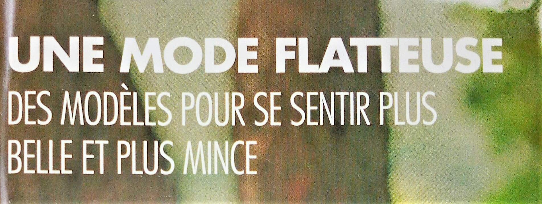 Je dois avouer que j’ai un petit peu de mal avec ce bloc titre, une mode flatteuse ça me convient, des modèles pour se sentir plus belles ça passe encore, mais « plus mince » me dérange un peu, car il n’est pas nécessaire de se voir plus mince pour se sentir belle. Je dirai que c’est maladroit.
