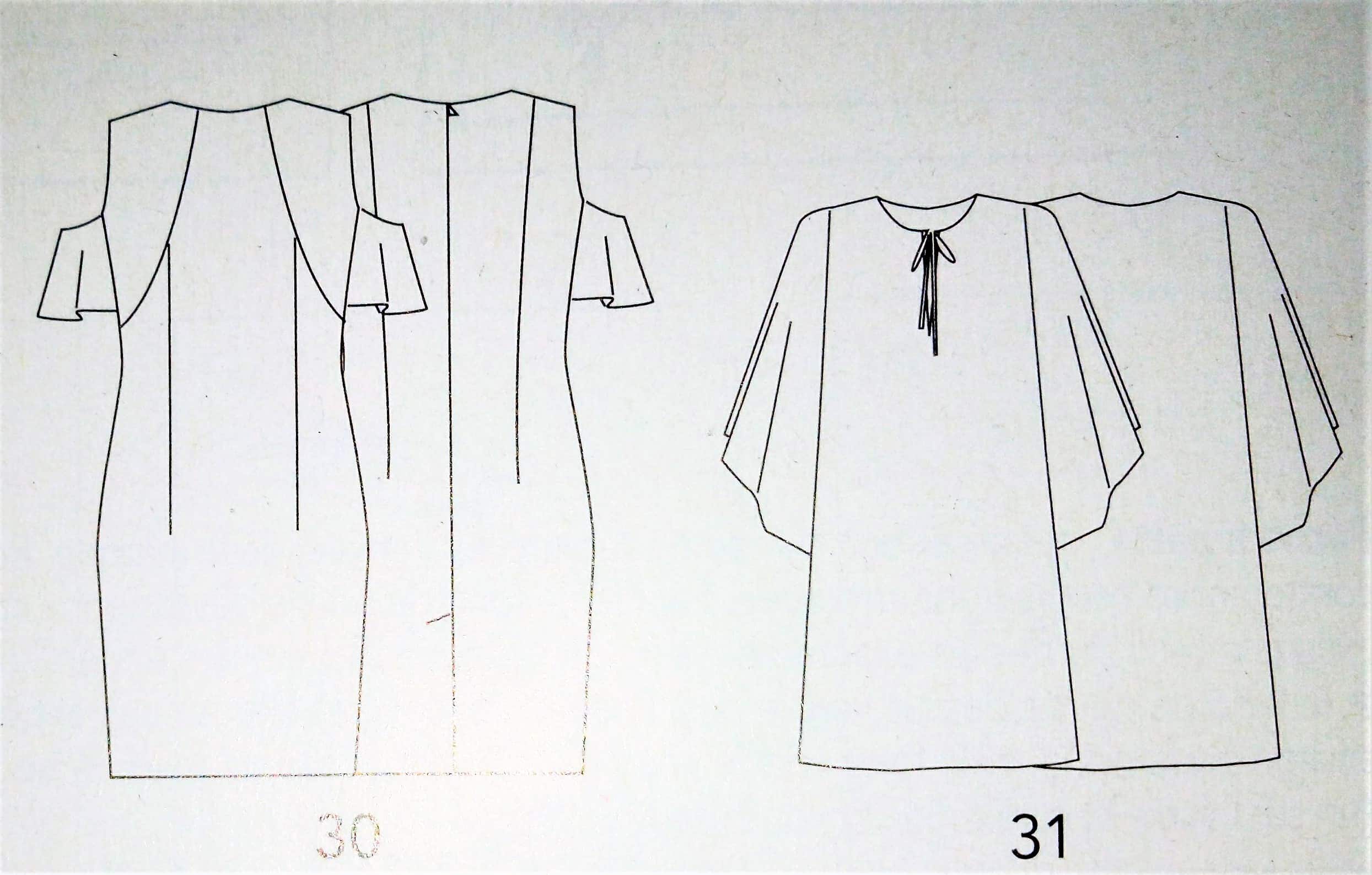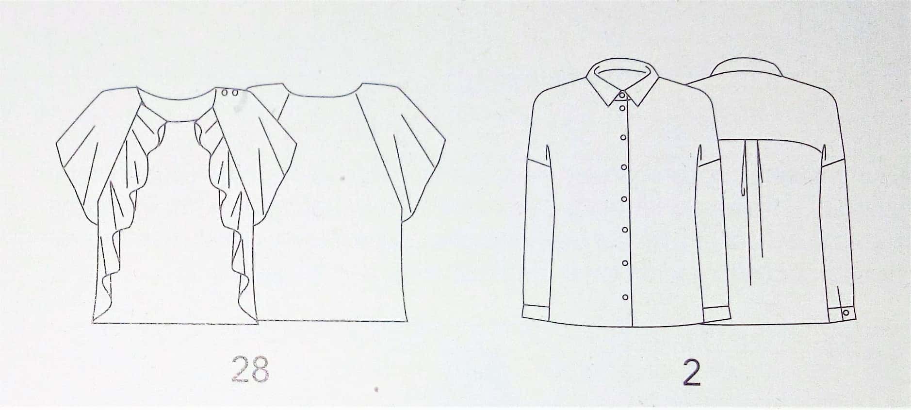 28 – Haut papillon Tailles 38 – 42 – 46 2 – Chemise à rayures tailles 40 – 44 – 48