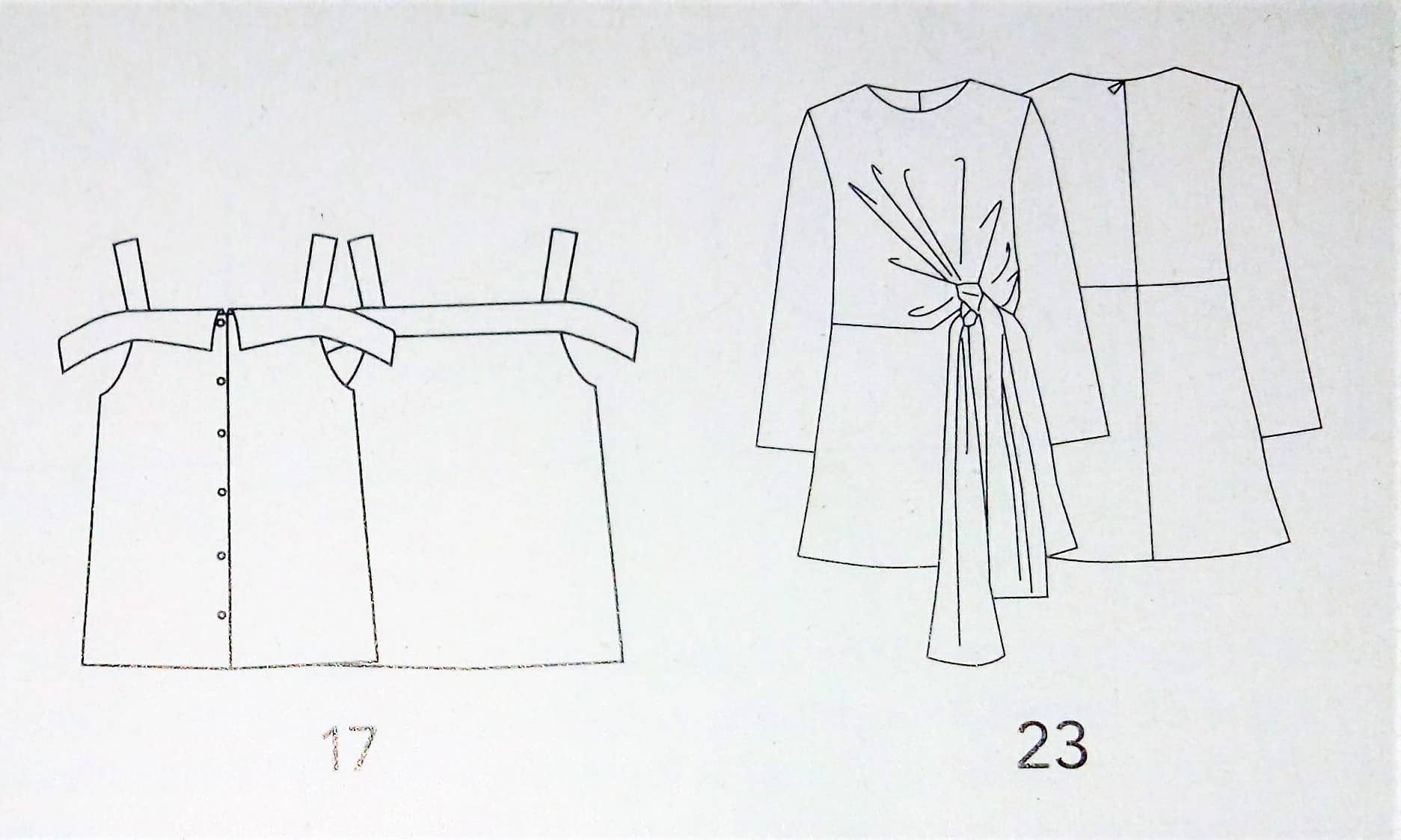 17 – Blouse à épaules dénudées tailles 40 – 44 – 48 23 – Blouson noué tailles 40 – 44 – 48