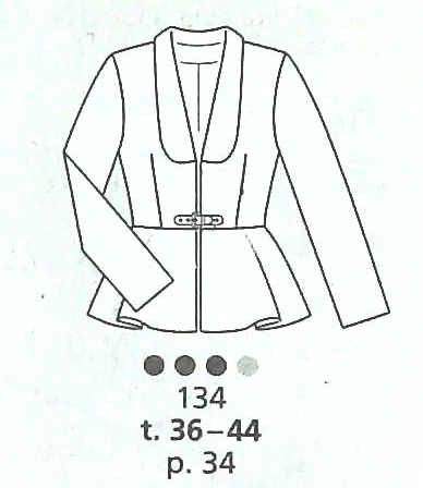 Mon dernier coup de coeur sera pour cette veste ajustée à col châle et basque souple. La taille est marquée par une bride en cuir à boucle. Elle à un côté strict mais sexy. Elle va de la taille 36 au 44.