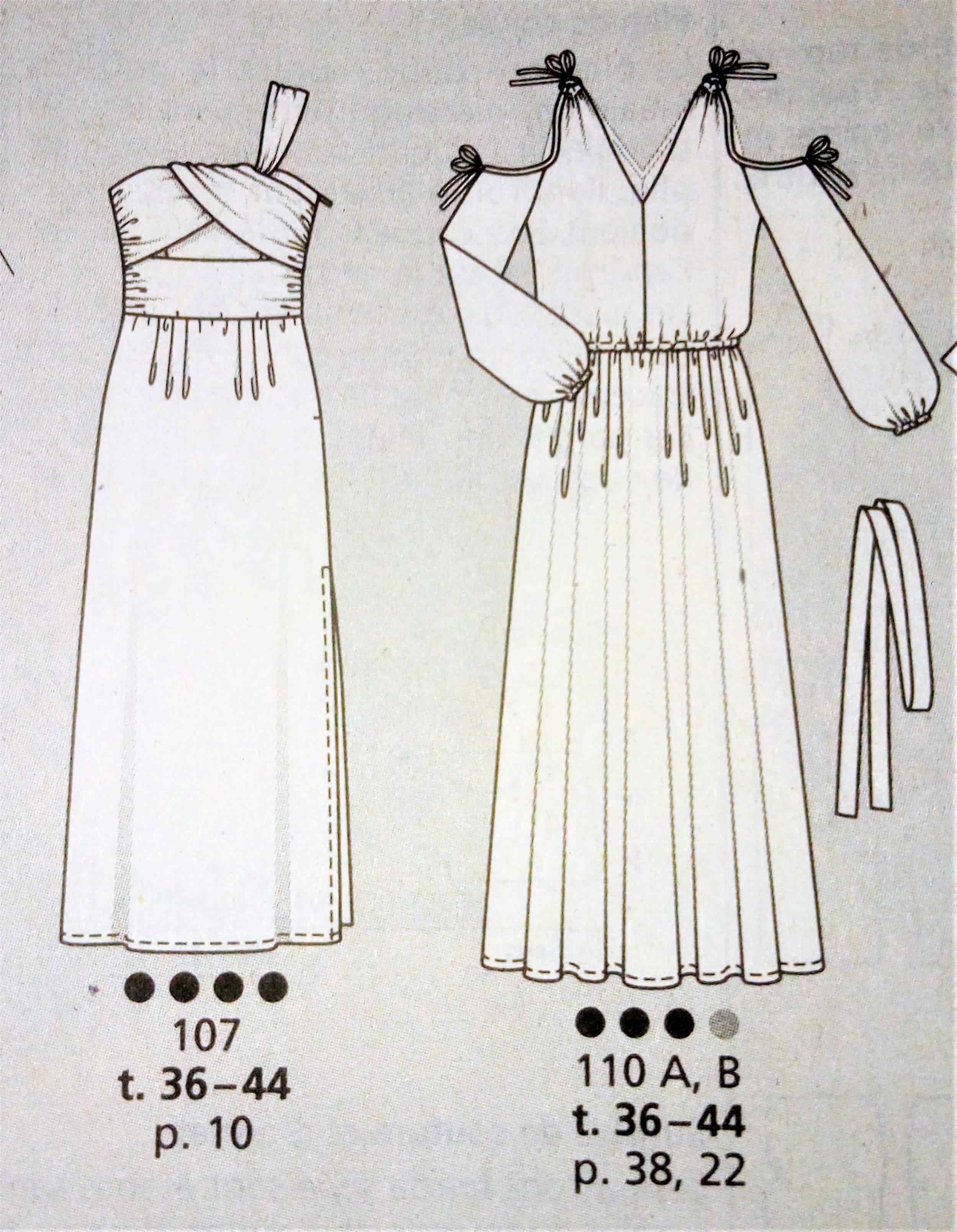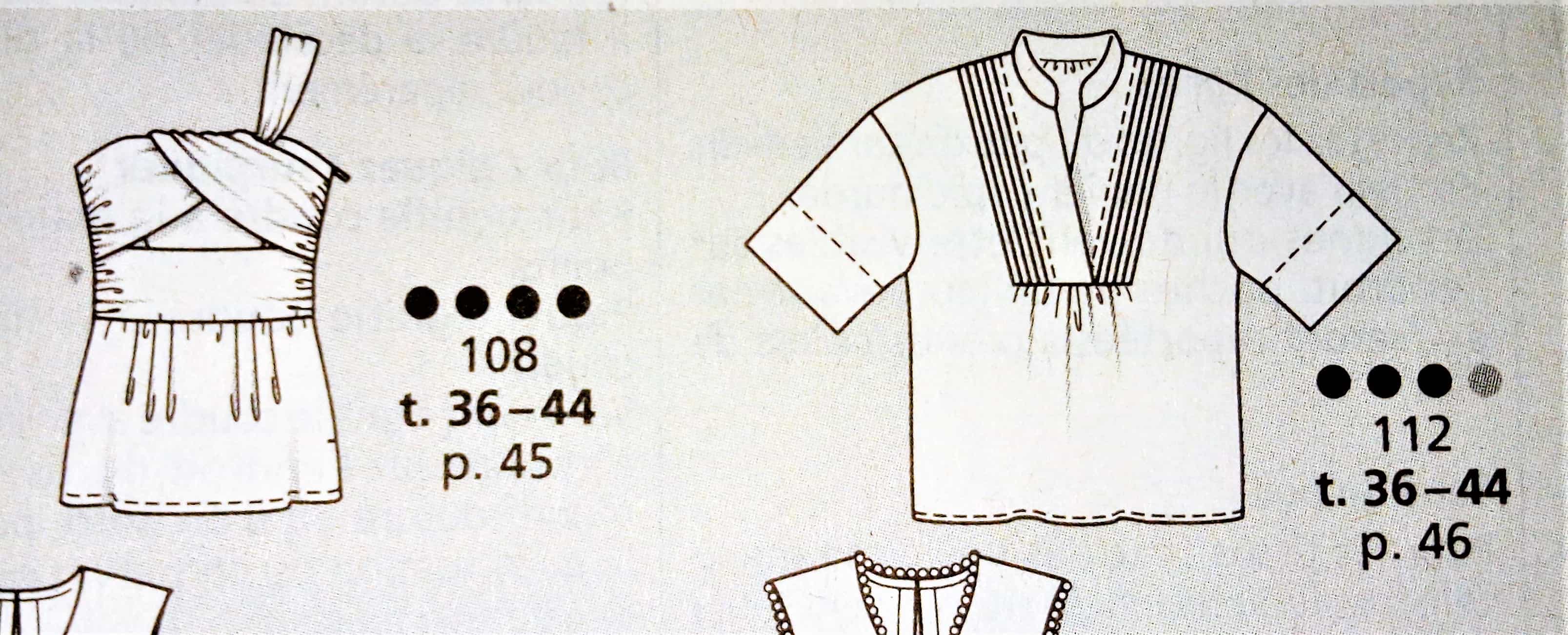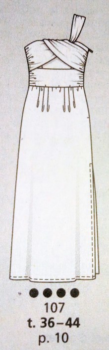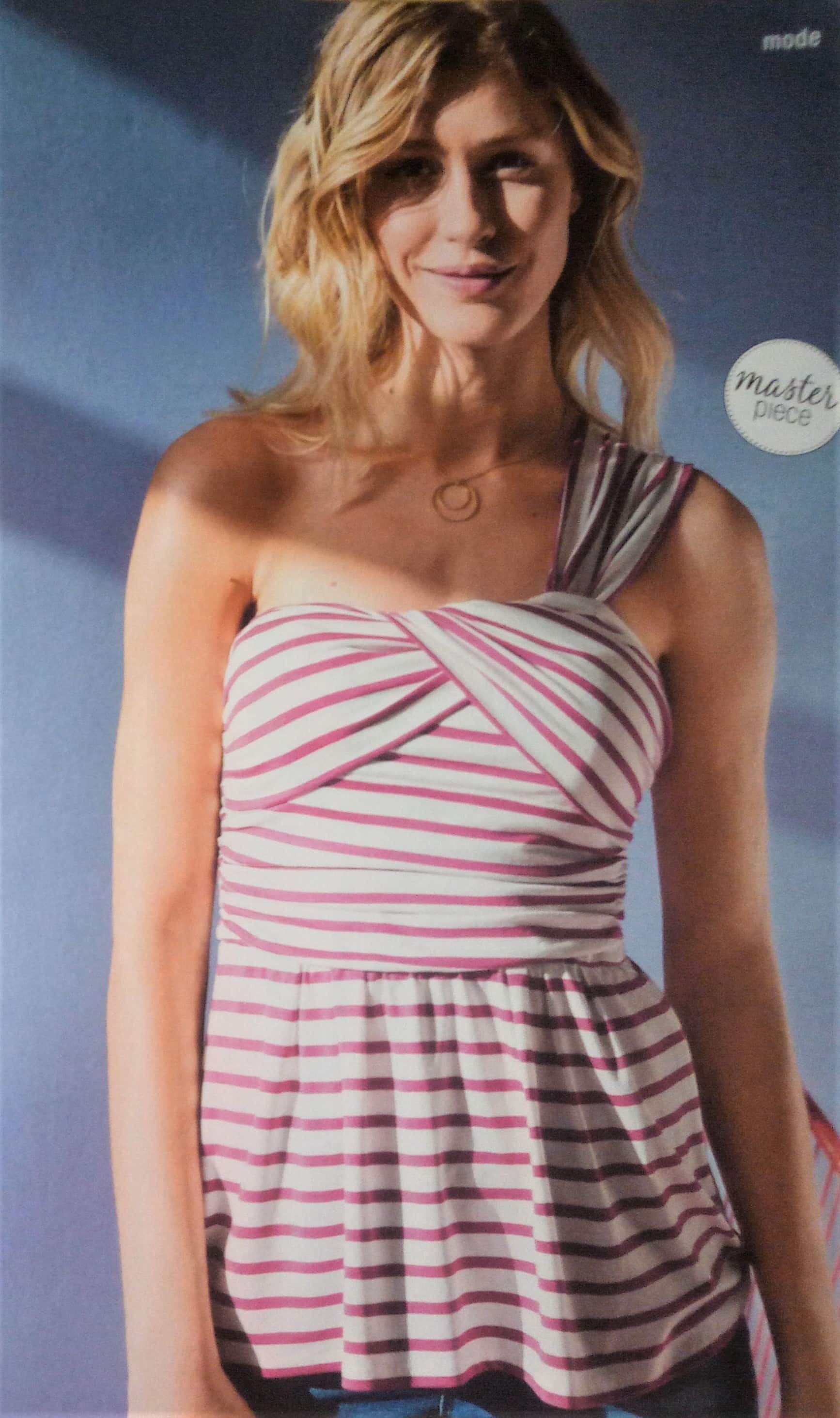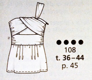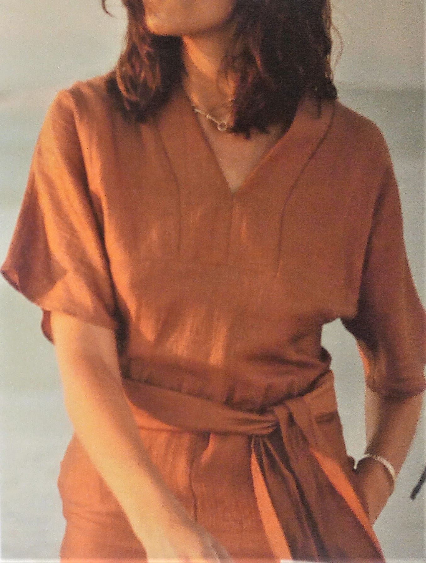 J’aime beaucoup ce top à basque mais aussi la version robe. Ce vêtement est inspirée de la Grèce. Le buste est drapé, avec une bretelle unique. La ceinture est elle aussi drapée. Des plis sur la jupe ou la basque partent de la taille, pour donner du mouvement, de la grâce et de la légèreté. Ils vont tous les deux du 36 au 44.