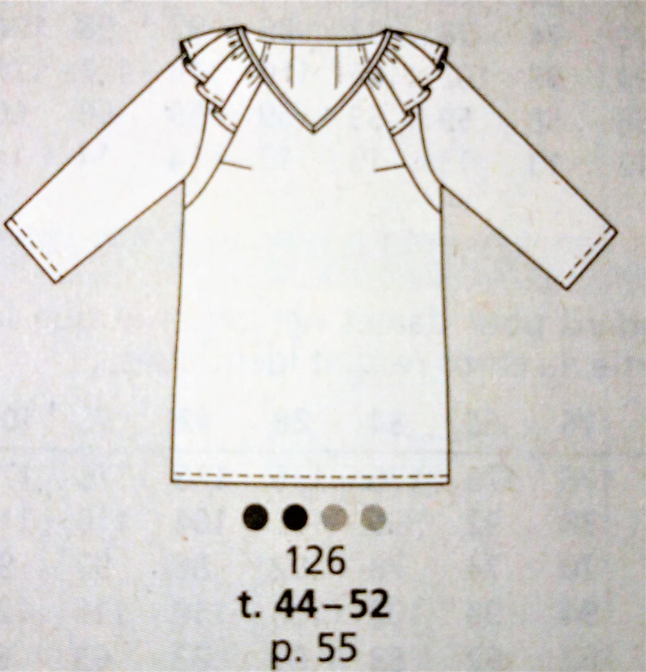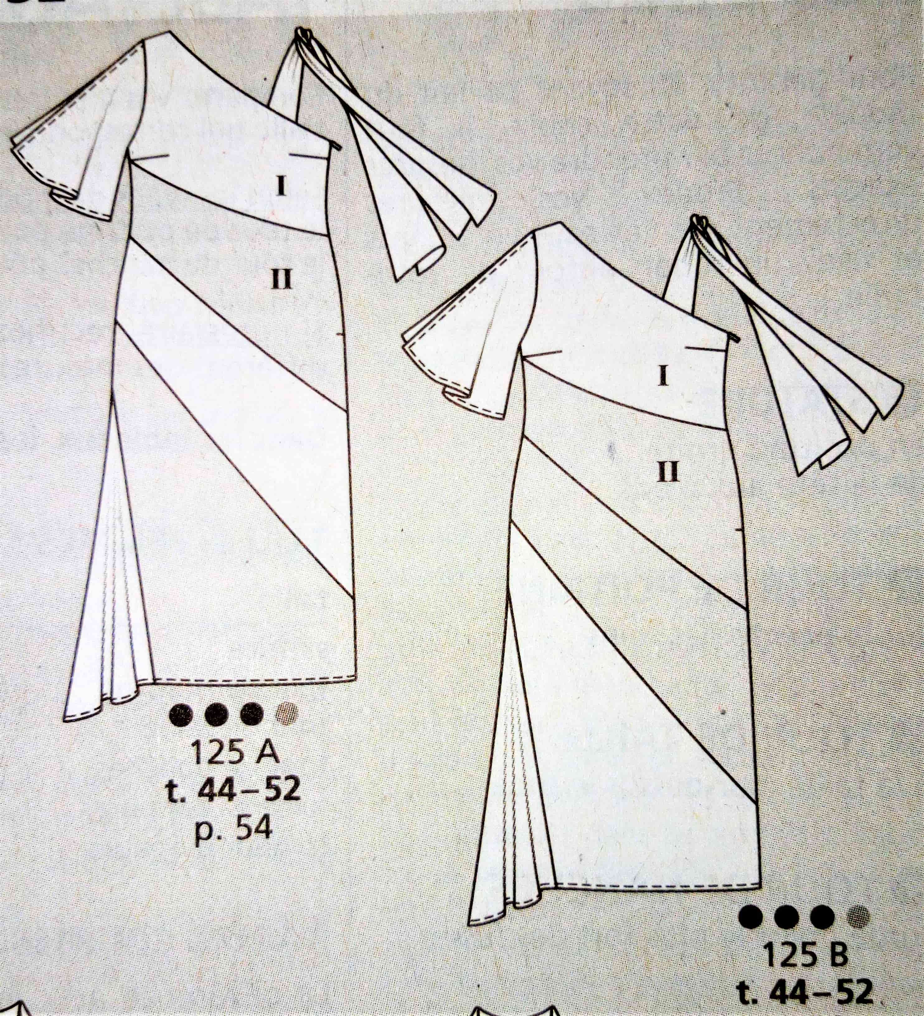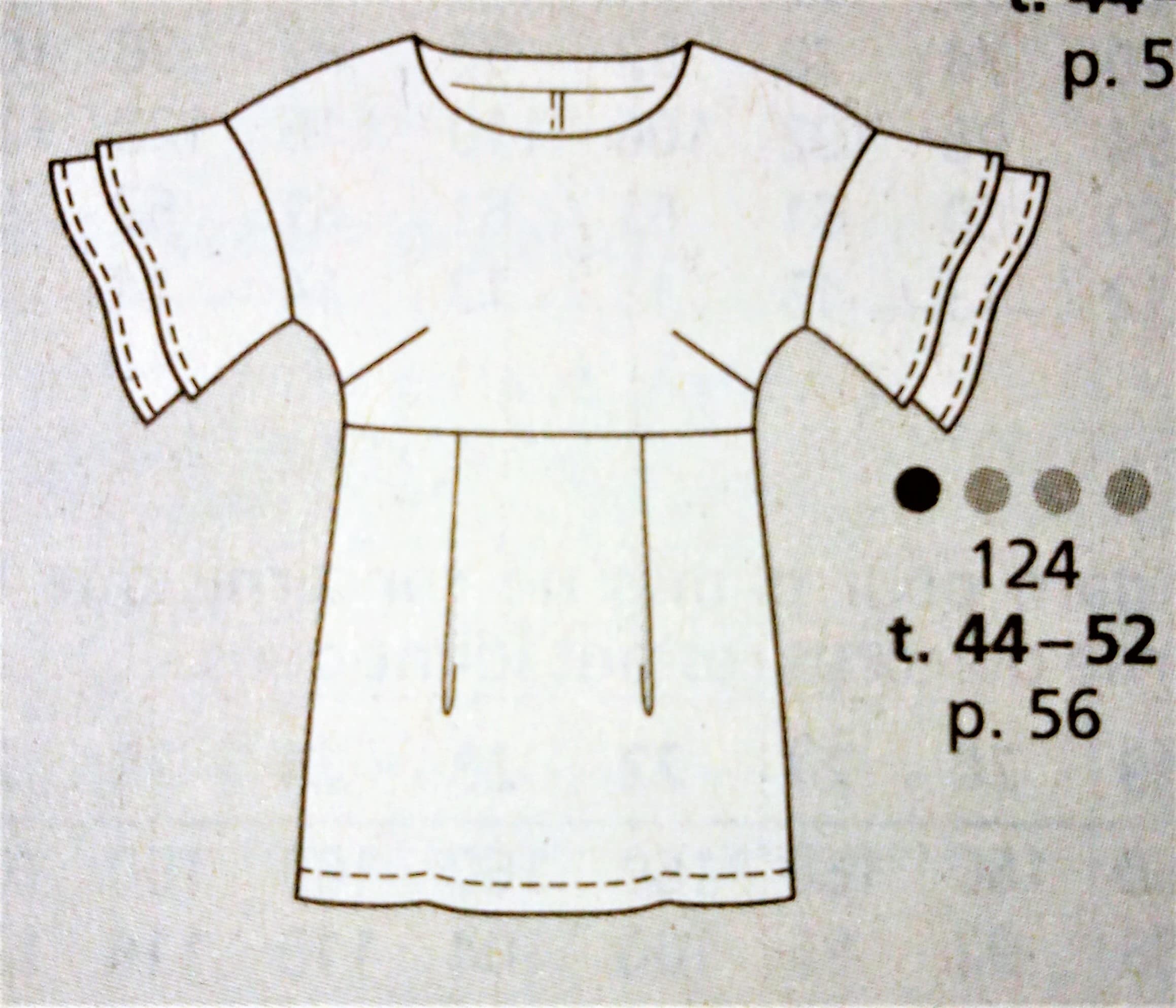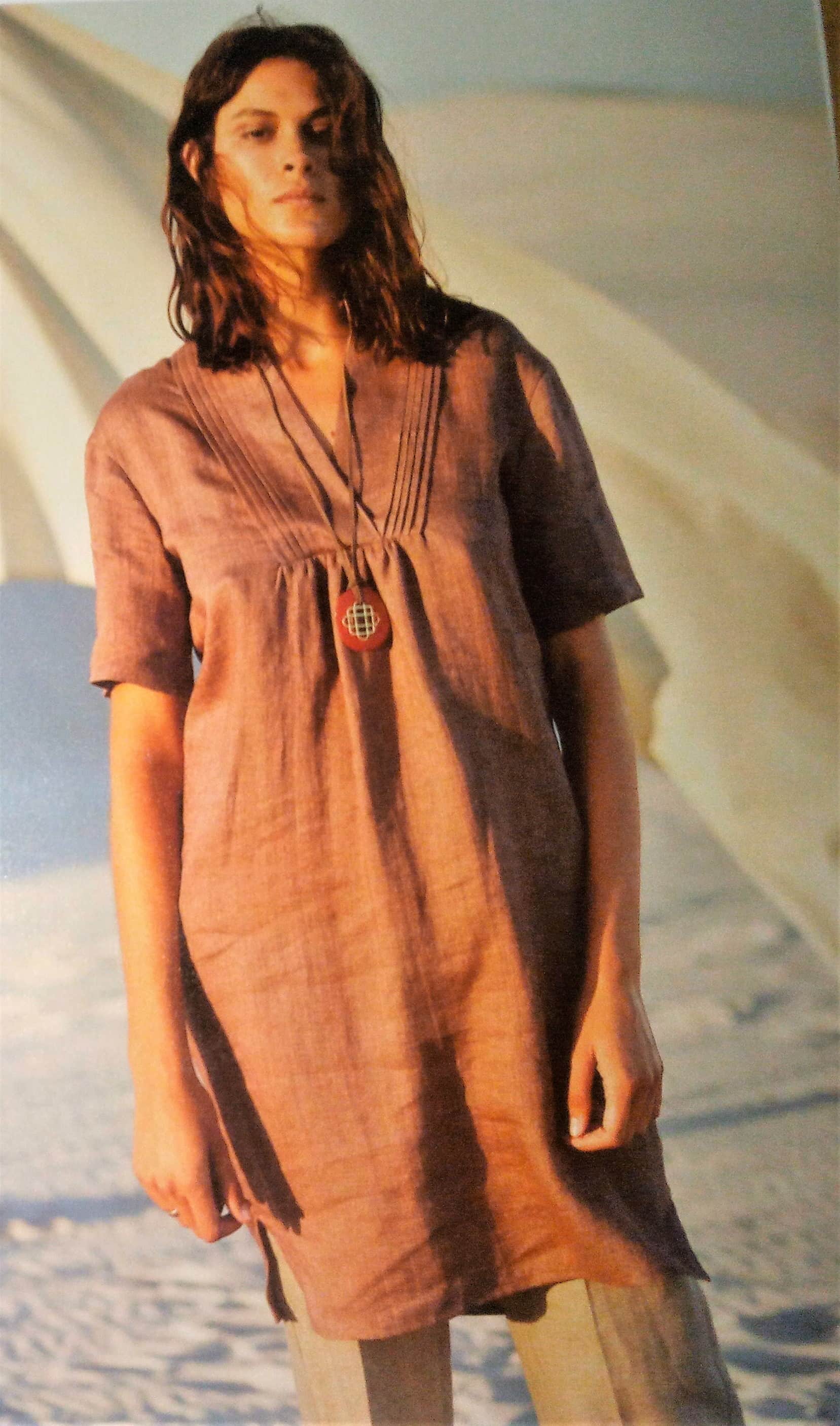 J’aime beaucoup ce top à basque mais aussi la version robe. Ce vêtement est inspirée de la Grèce. Le buste est drapé, avec une bretelle unique. La ceinture est elle aussi drapée. Des plis sur la jupe ou la basque partent de la taille, pour donner du mouvement, de la grâce et de la légèreté. Ils vont tous les deux du 36 au 44.