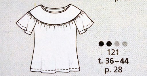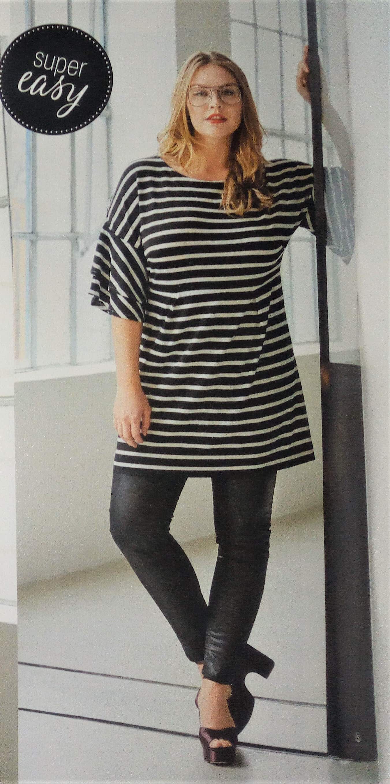 Voici un tee shirt simple comme je les aime. Il est fluide, avec un empiècement rond et des manches papillons. Il va de la taille 36 au 44.