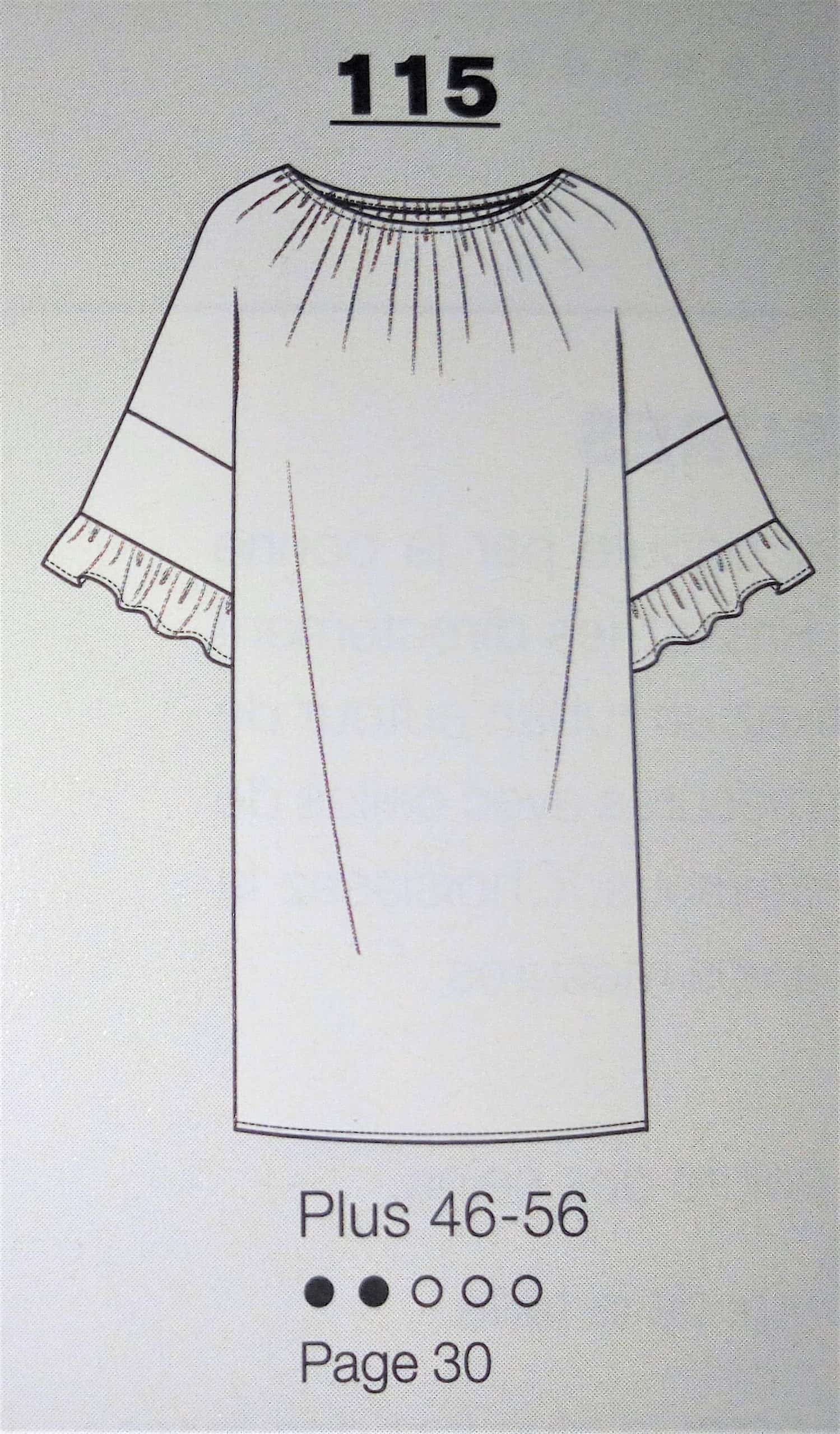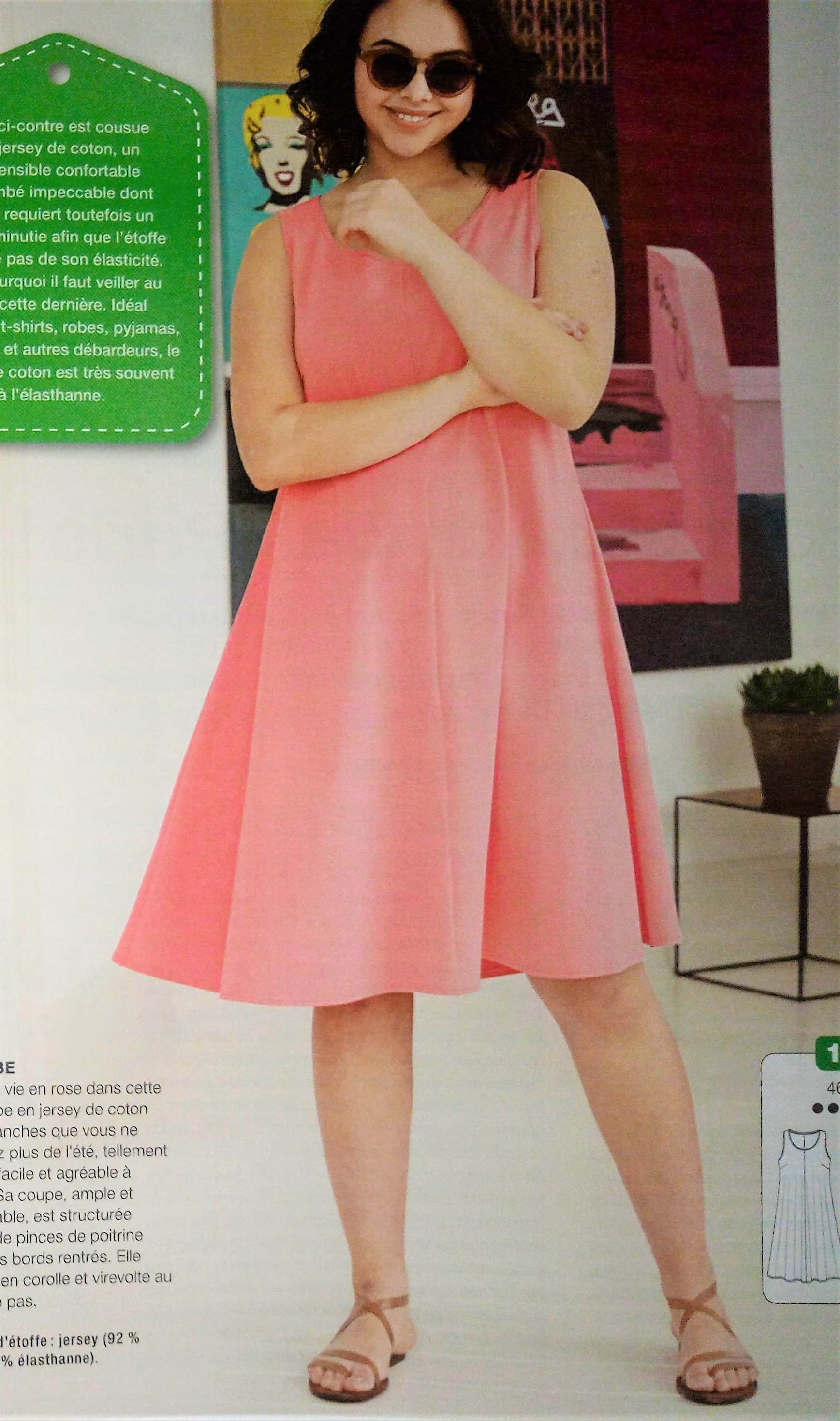 Encore une robe et en grandes tailles celle ci, elle va du 46 au 56. Elle est réalisée en jersey elle s’évase en corolle à partir de la taille. Elle n’a pas de manches et son encolure est ronde.