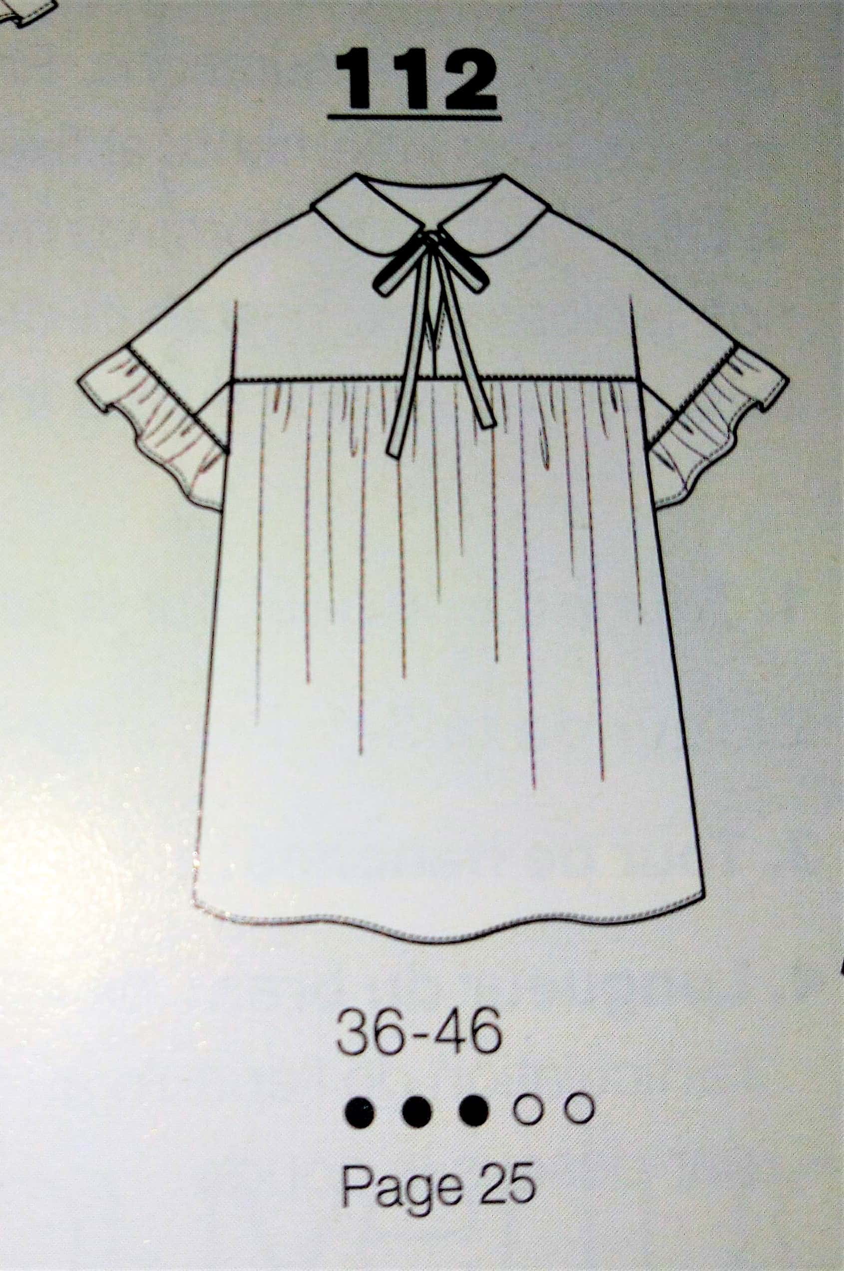 Une autre petite robe qui me plait beaucoup. Elle est légèrement évasée. Son originalité est dans son col en V avec patte boutonnée. Les manches et la découpe d’emmanchures sont réalisés en voile uniquement . Le reste de la robe est lui doublé .pour mettre l’accent sur le tissus de la robe. Elle va de la taille 36 au 46.