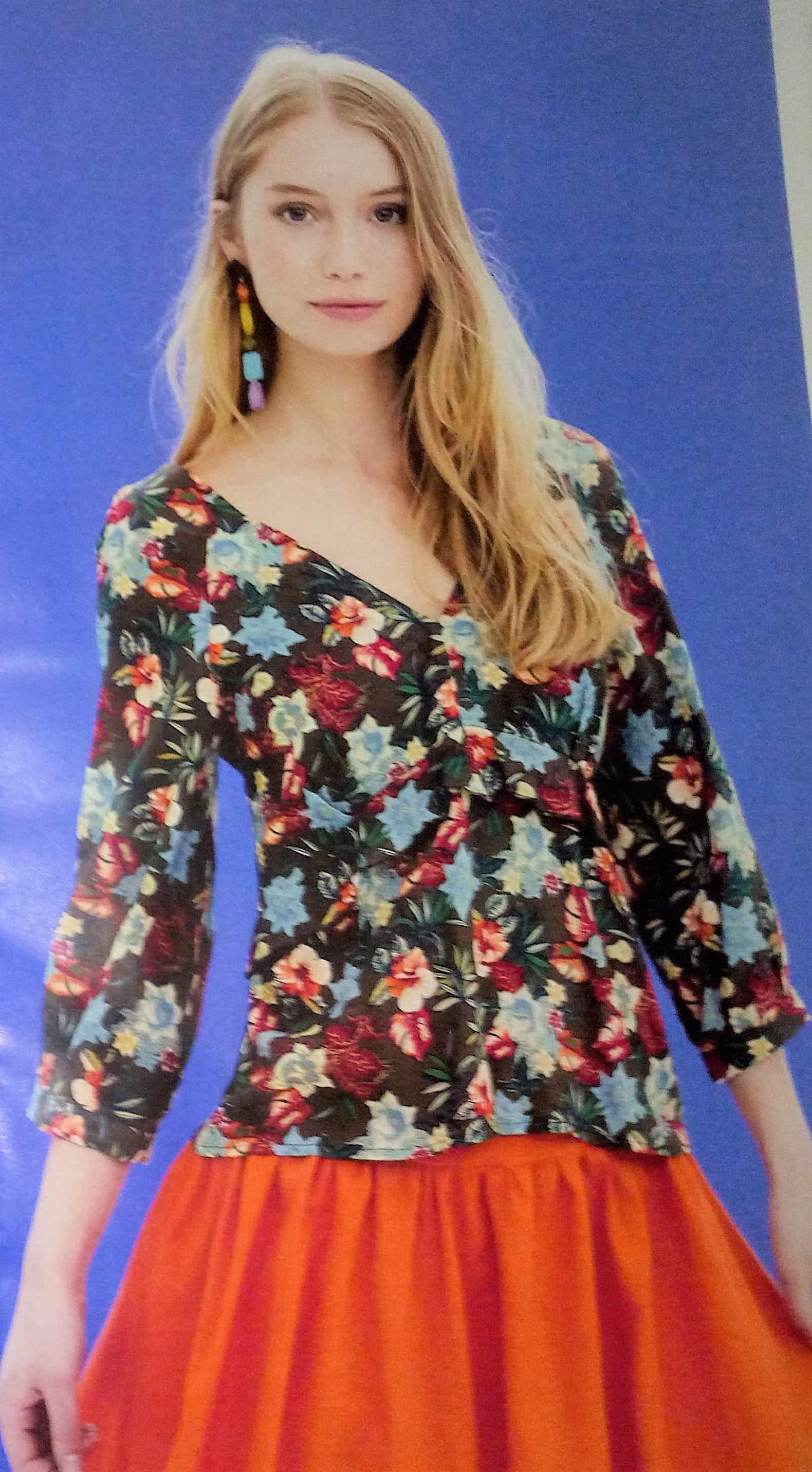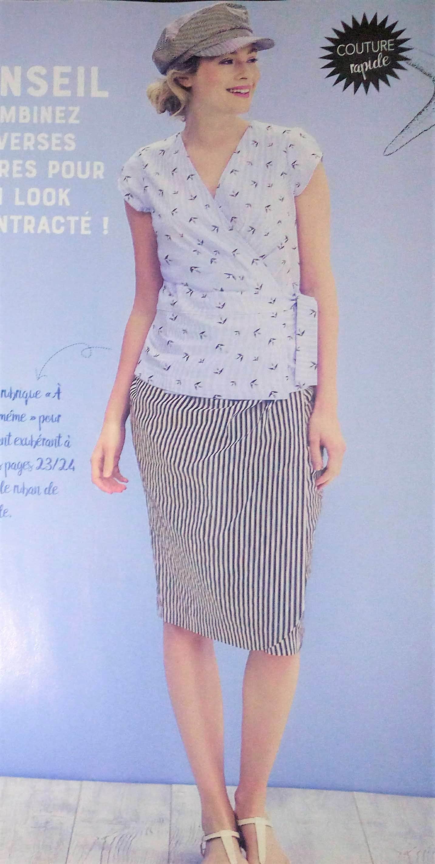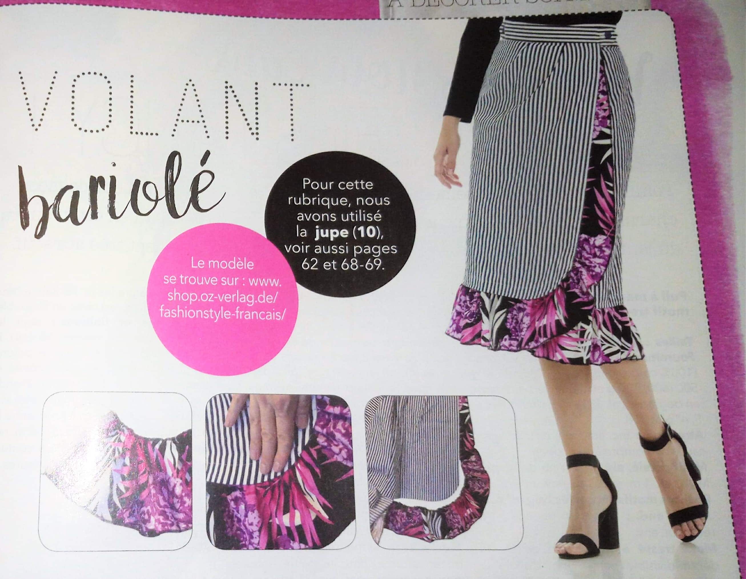 Un autre tuto nous enseignera comment coudre un volant, ici sur une jupe de la revue. J’aime assez le mélange rayures et fleurs.![]()