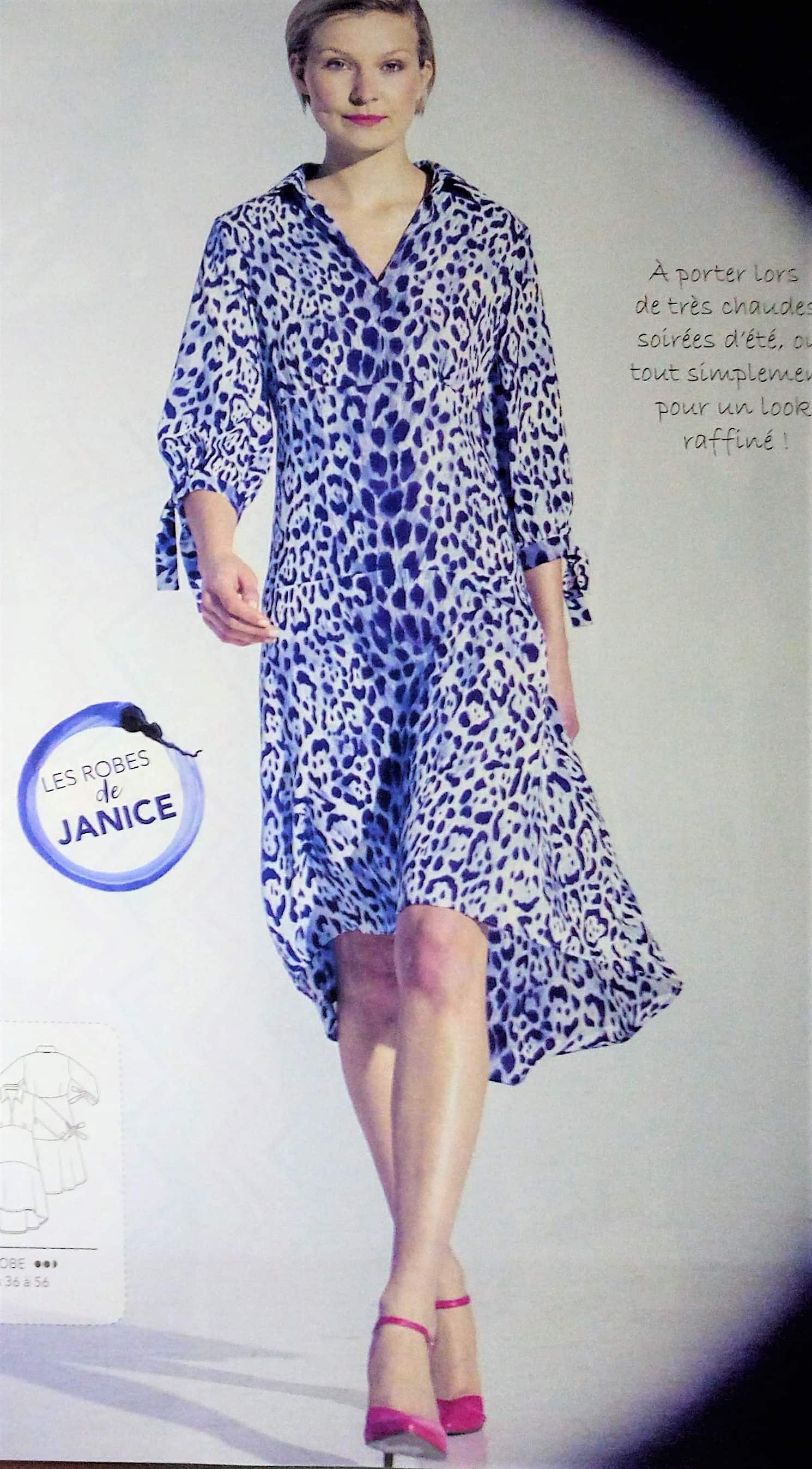 Voici dans mes coups de coeur une robe de Janice. C’est un créateur qui dessine un modèle dans chaque numéro. Le haut de la robe part sur une base de chemisier avec son col classique et des manches 3/4 terminées par des poignets qui se nouent. La taille est remontée avec un large empiècement arrondi vers le haut. La jupe évasée vient se greffer dessus tout en étant plus longue dans le dos que sur le devant pour plus d’élégance.