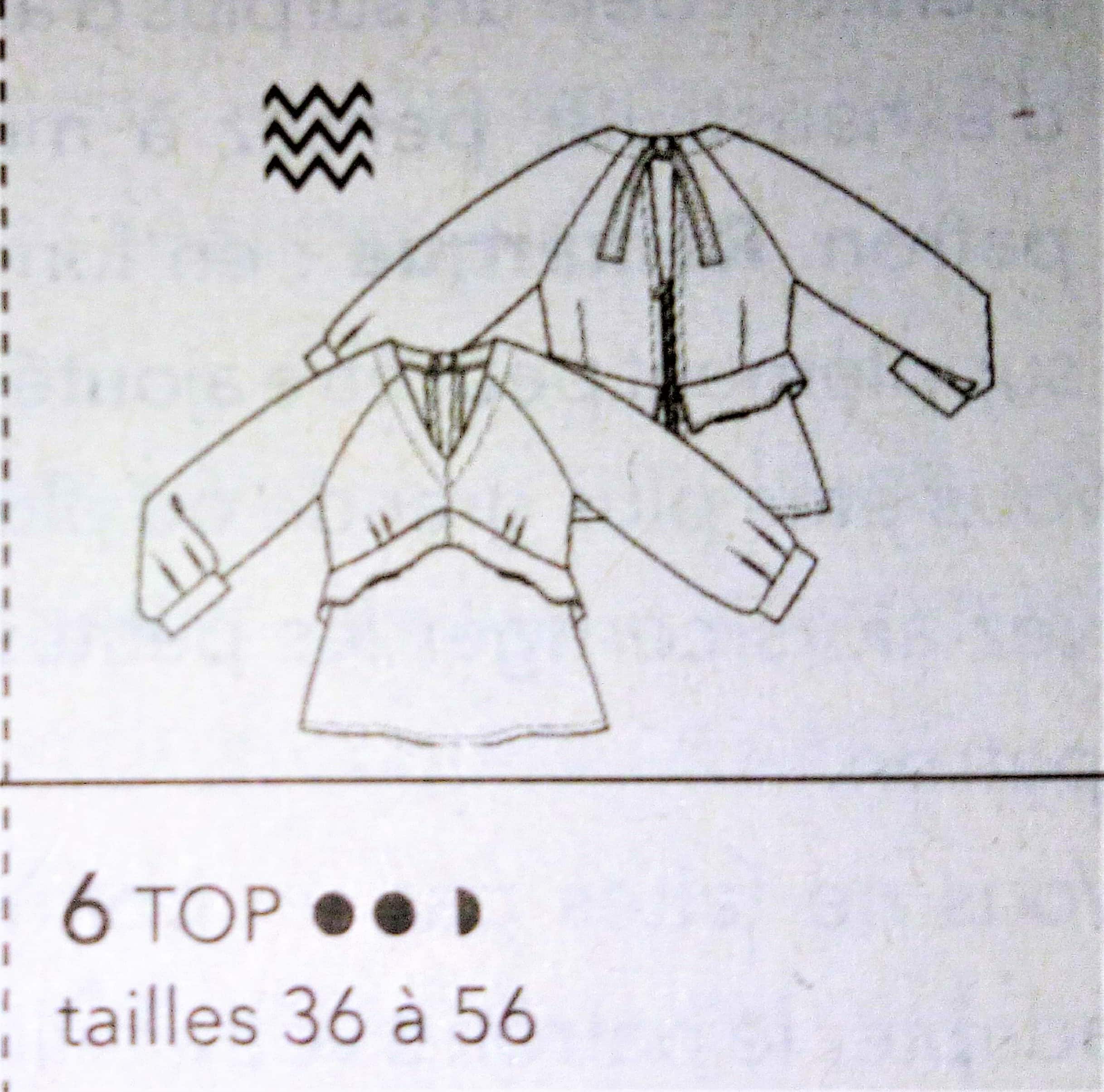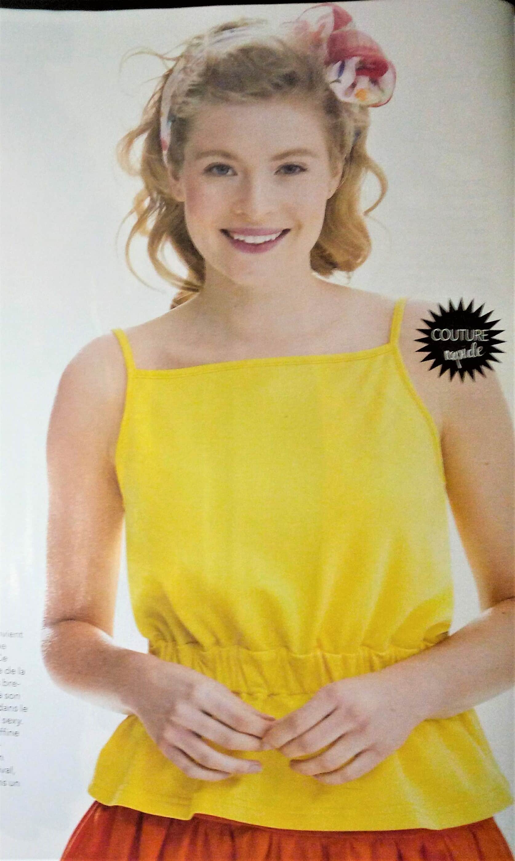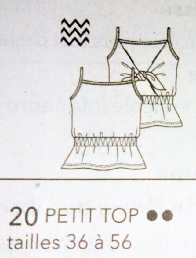 Je trouve ce petit top très sympa lui aussi avec son devant très sage et la taille élastiquée. L’originalité réside dans son superbe dos noué.