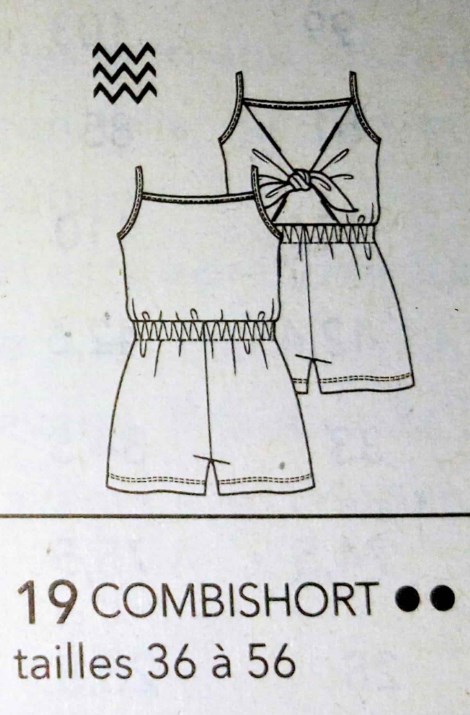 Le voici en version combi-short, je pense qu’on peut le faire en combinaison pantalon en rallongeant les jambes. Le modèle court est parfait pour les grosses chaleurs que nous subissons actuellement.