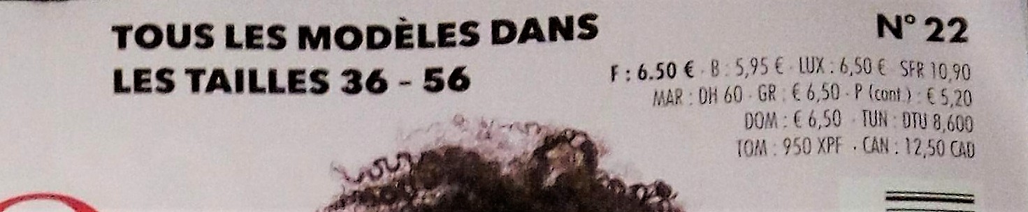 C’est ce bloc titre qui en fait ma revue chouchou, avec la grande qualité de leurs patrons bien entendu. Tous les patrons sont dans le même gamme de taille. Tous vont du 36 au 56!