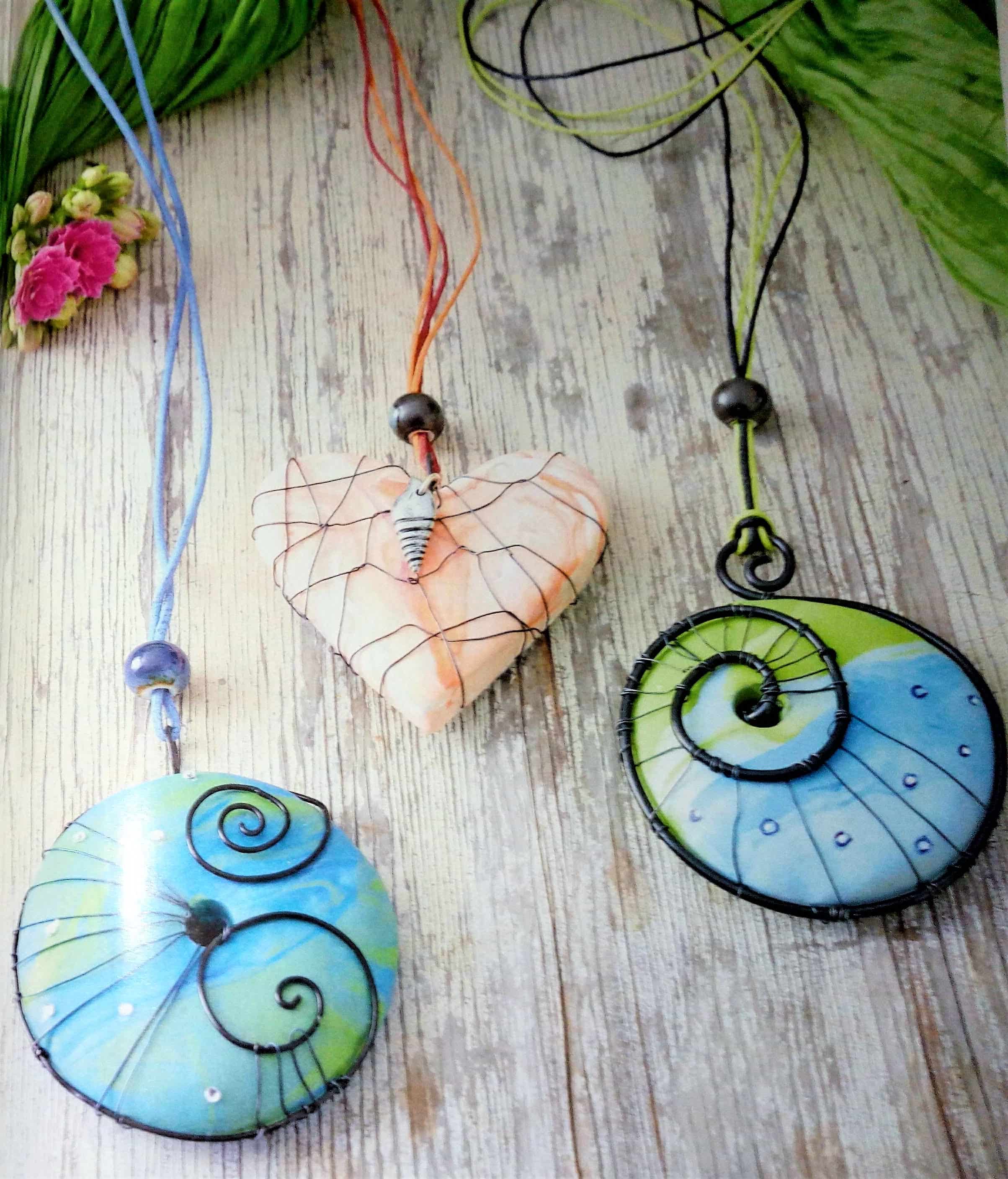 Dernier tuto pour le moins original, car il s’agit à la réalisation de bijoux. Ceux-ci sont réalisés en pâte à modeler. Ils sont ensuite emprisonnés dans des fils métallisés de diverses épaisseurs.