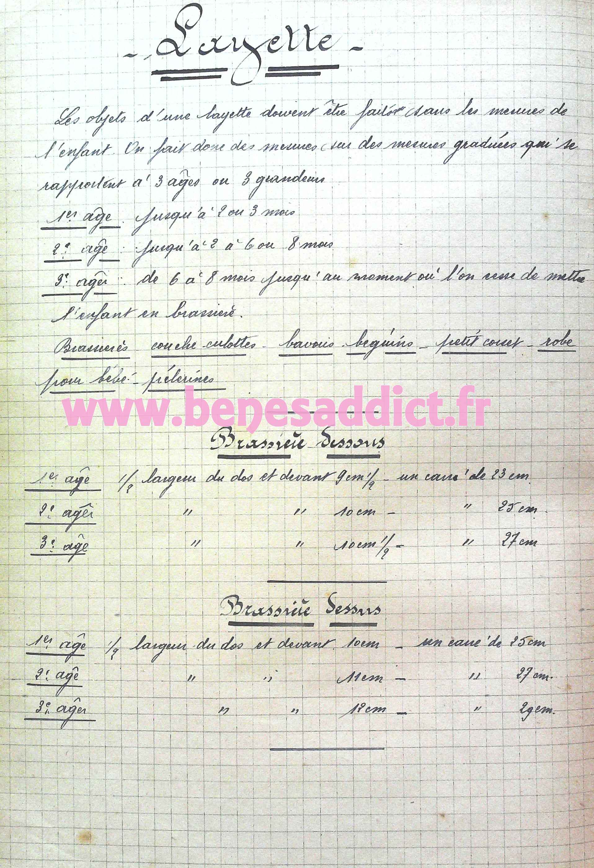 Il s’agit d’un cahier de Coupe » Layette et Lingerie » qui date de 1943.