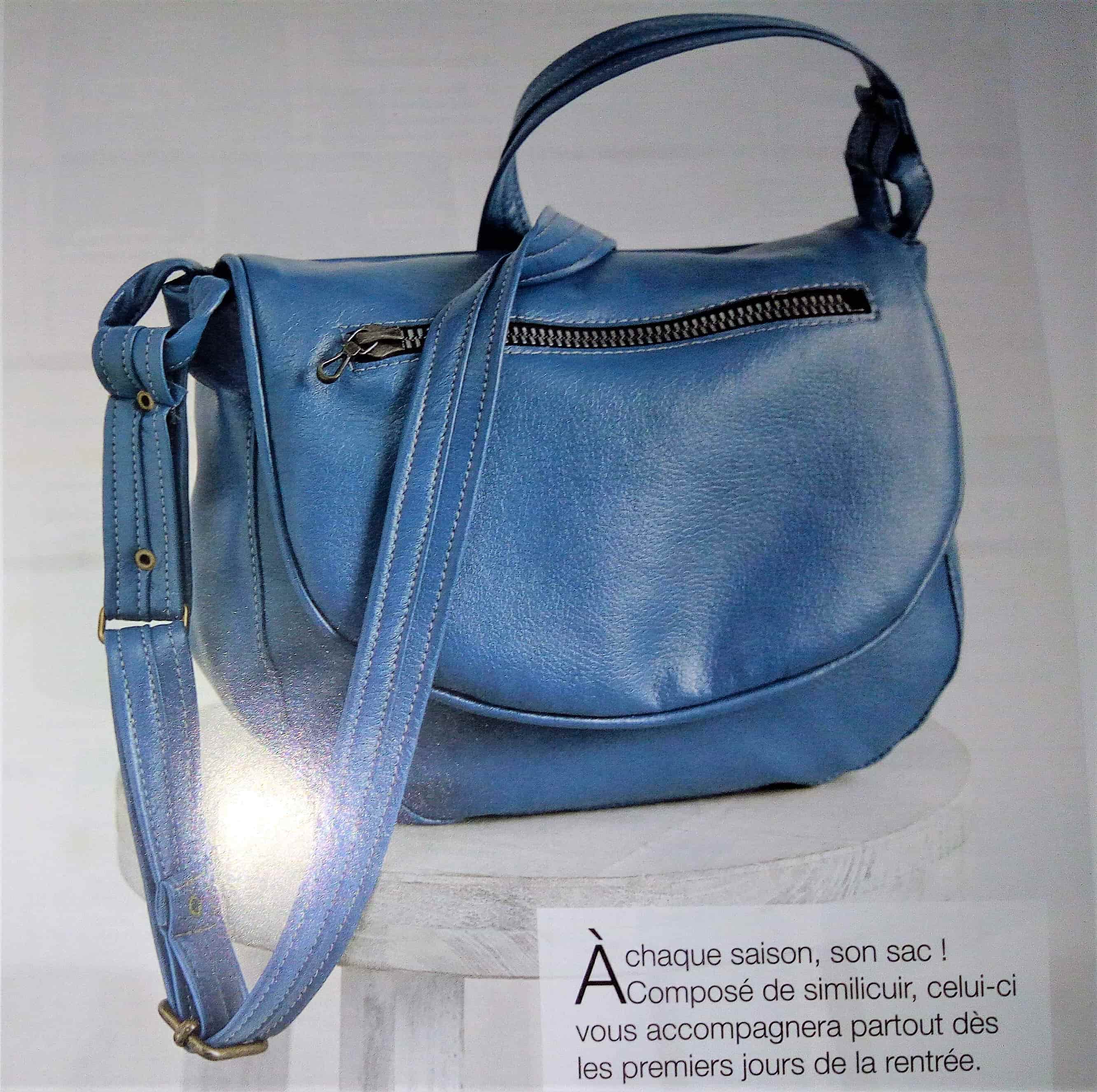 Mon premier coup de coeur est pour cette chemise à manches courtes avec revers. Elle a un bel empiècement réalisé en tissus à étoiles. Il se termine en pointe dans le dos et sur les découpes du devant. Elle va du 36 au 46. J’aime beaucoup ce sac besace. Il est cousu en simili. Son rabat avec poche est bordé d’un passepoil. Le sac se ferme à l’aide d’une pression aimantée. J’adore cet ensemble de tee-shirts « Mère et fille » en tissus assortis. Ils ont la même base tout les deux. Une encolure bateau avec un empiècement en tissu contrastant avec un petit nœud vient sublimer l’ensemble. Ils vont du 34 au 44 et du 104 cm au 152 cm. J’adore ce cartable! Je le trouve très beau, bien fini avec des petits détails astucieux. Tels que la poche à fermeture à glissière dans le rabat, les bandes réfléchissantes sur le côté. Mais aussi une grande poche sur le devant et des bretelles rembourrées. Mon dernier coup de coeur est pour ce superbe sac « vintage » . Le choix du tissu et des anses en bambou donne vraiment un sac dans l’esprit rétro. Il est digne de mes revues vintages du lundi.