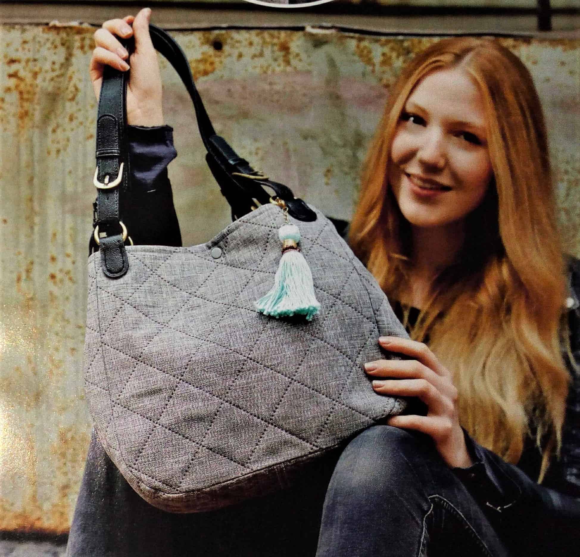 Burda nous indique clairement le nombre de modèles présents dans la revue à l’aide d’un gros macaron. Vous trouverez 15 patrons de sacs.