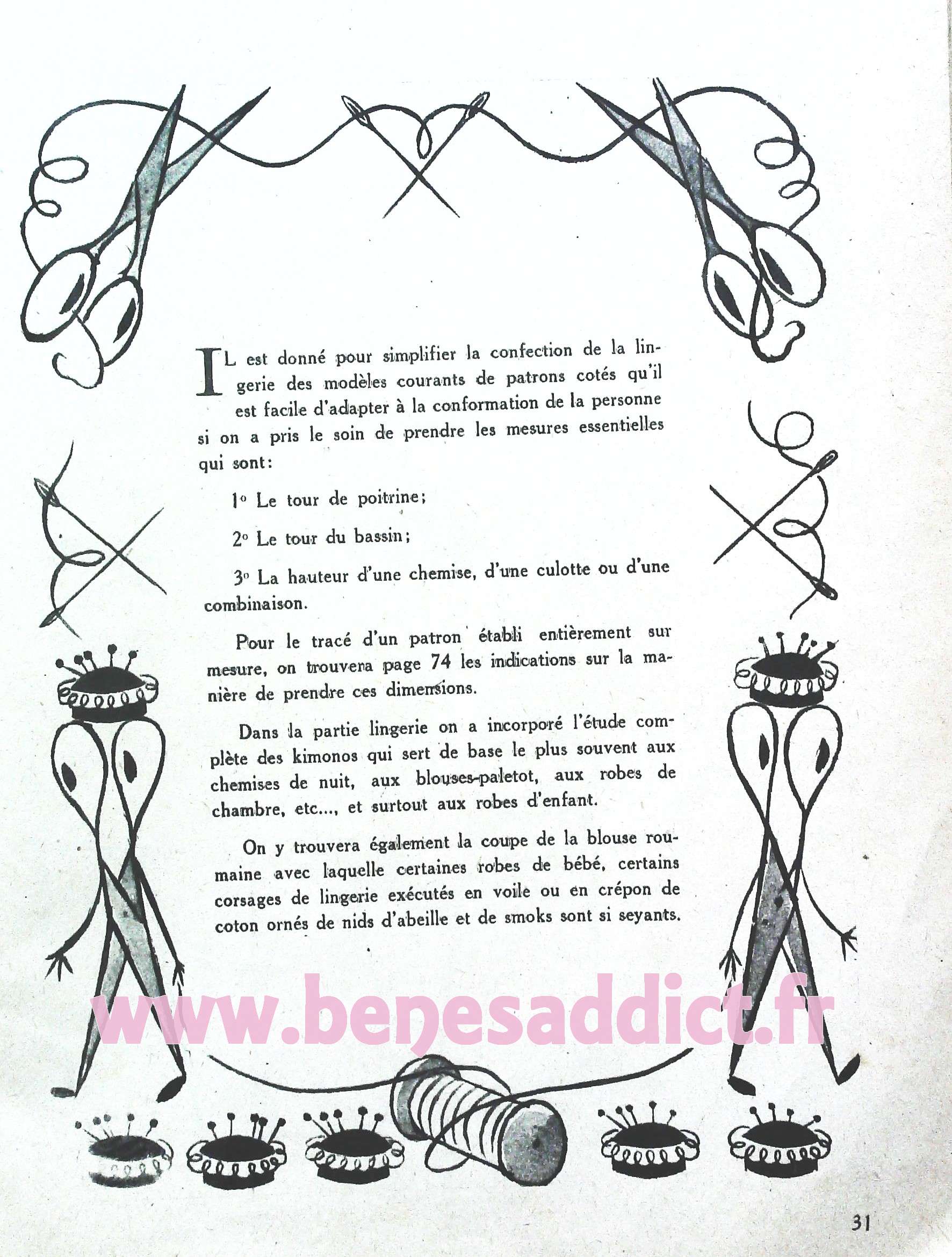 Ce livre vous enseignera toutes ces règles à l’aide d’exemples, de multiples schémas et explications. Vous dessinerez avec précision de magnifiques patrons en partant de la layette, aux vêtements de femmes et d’enfants, mais aussi de la lingerie. Ils sont toujours d’actualité.