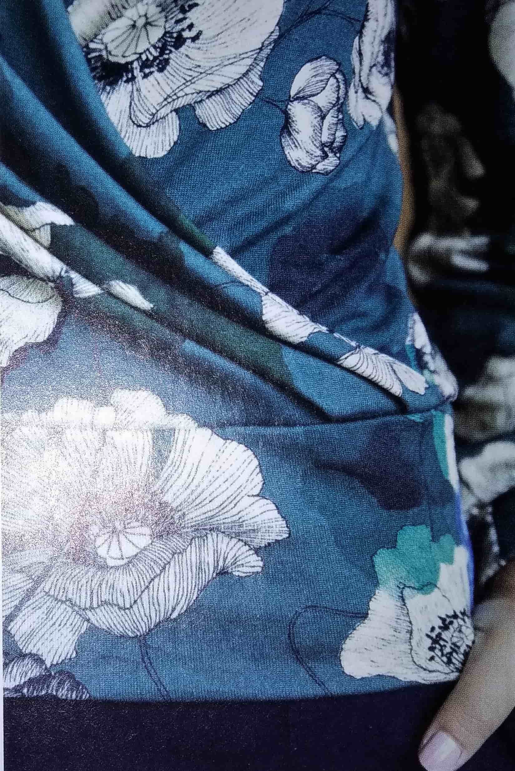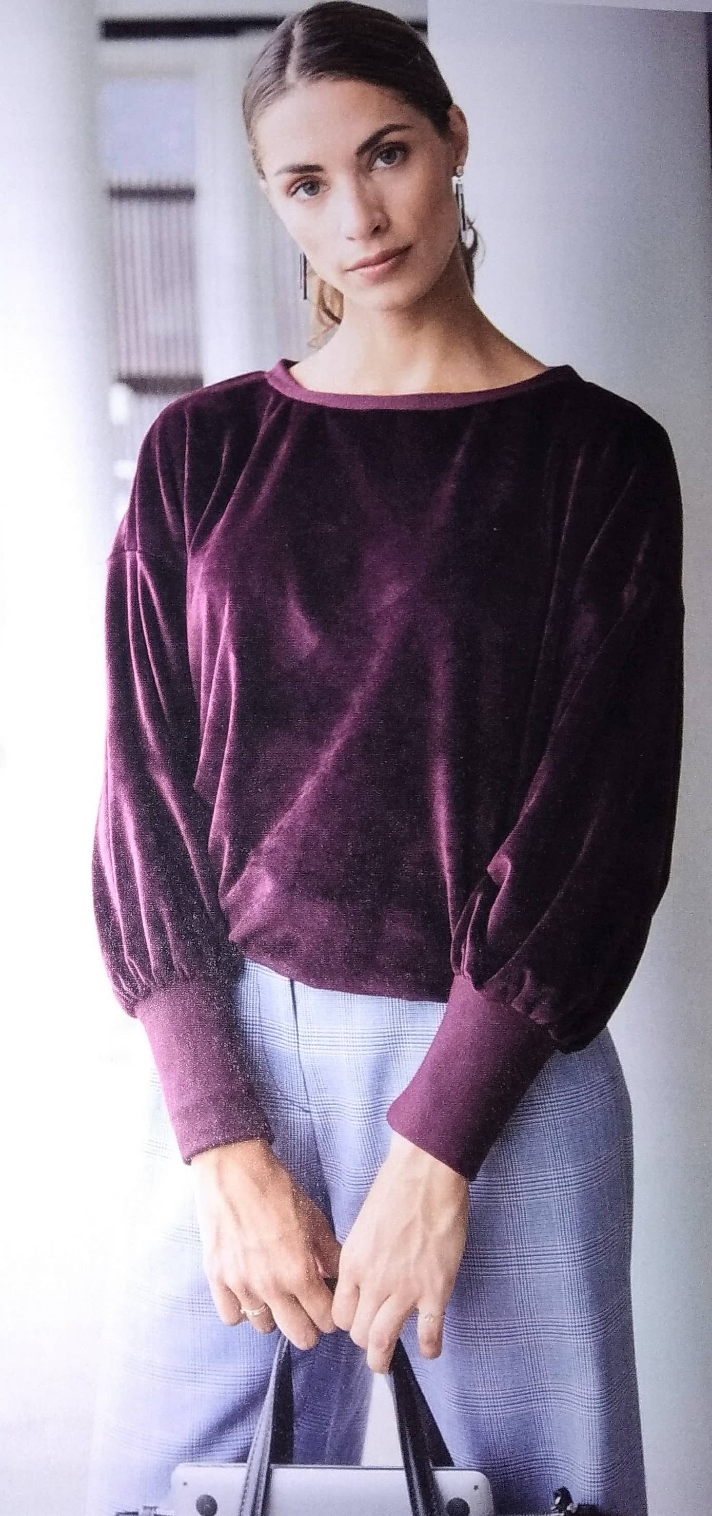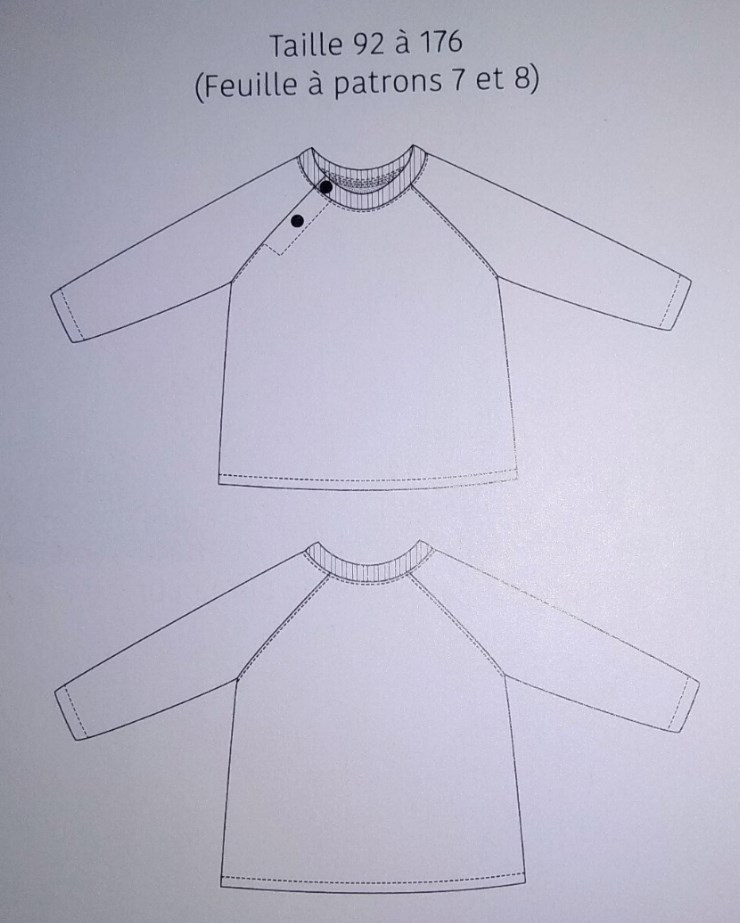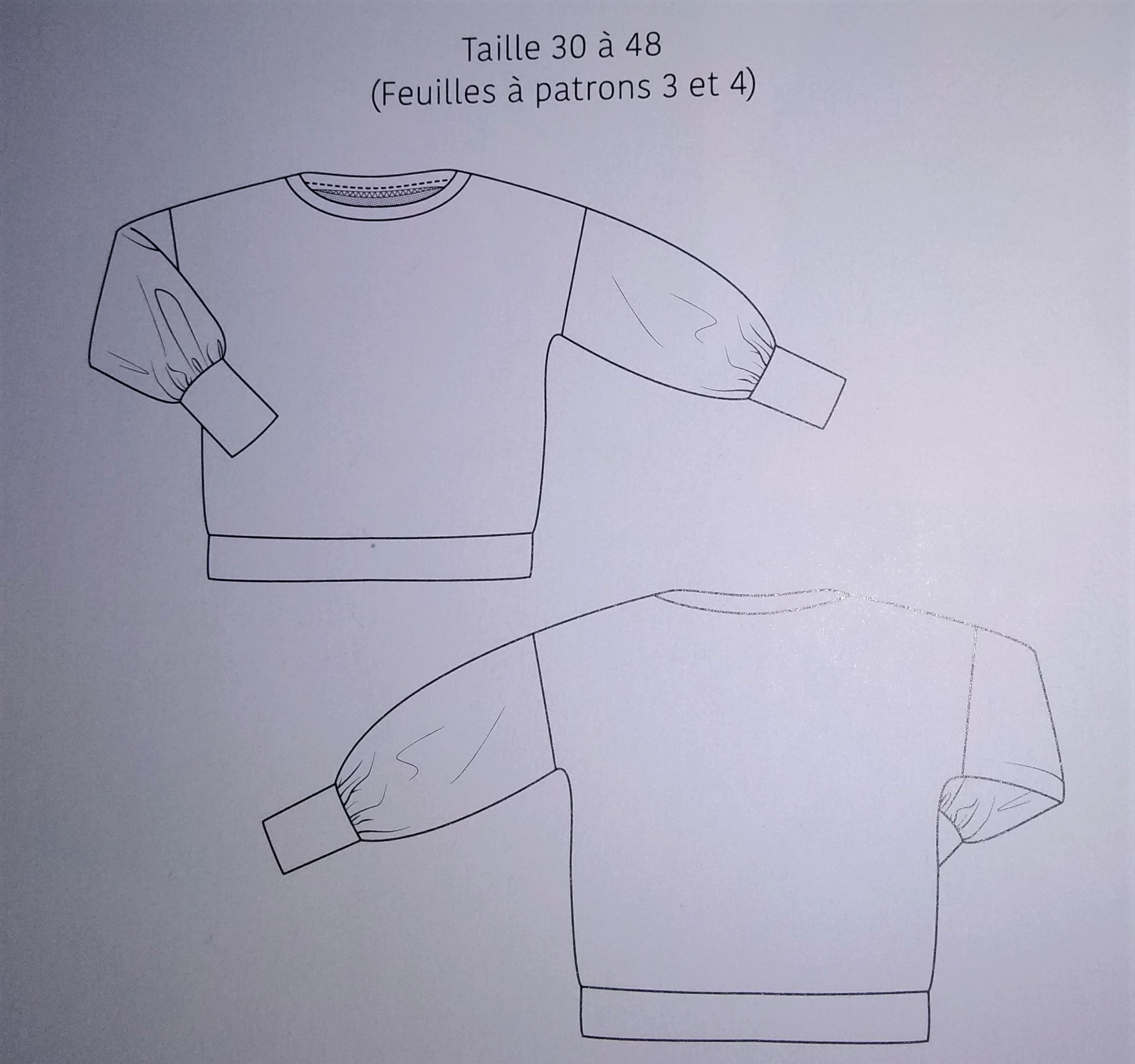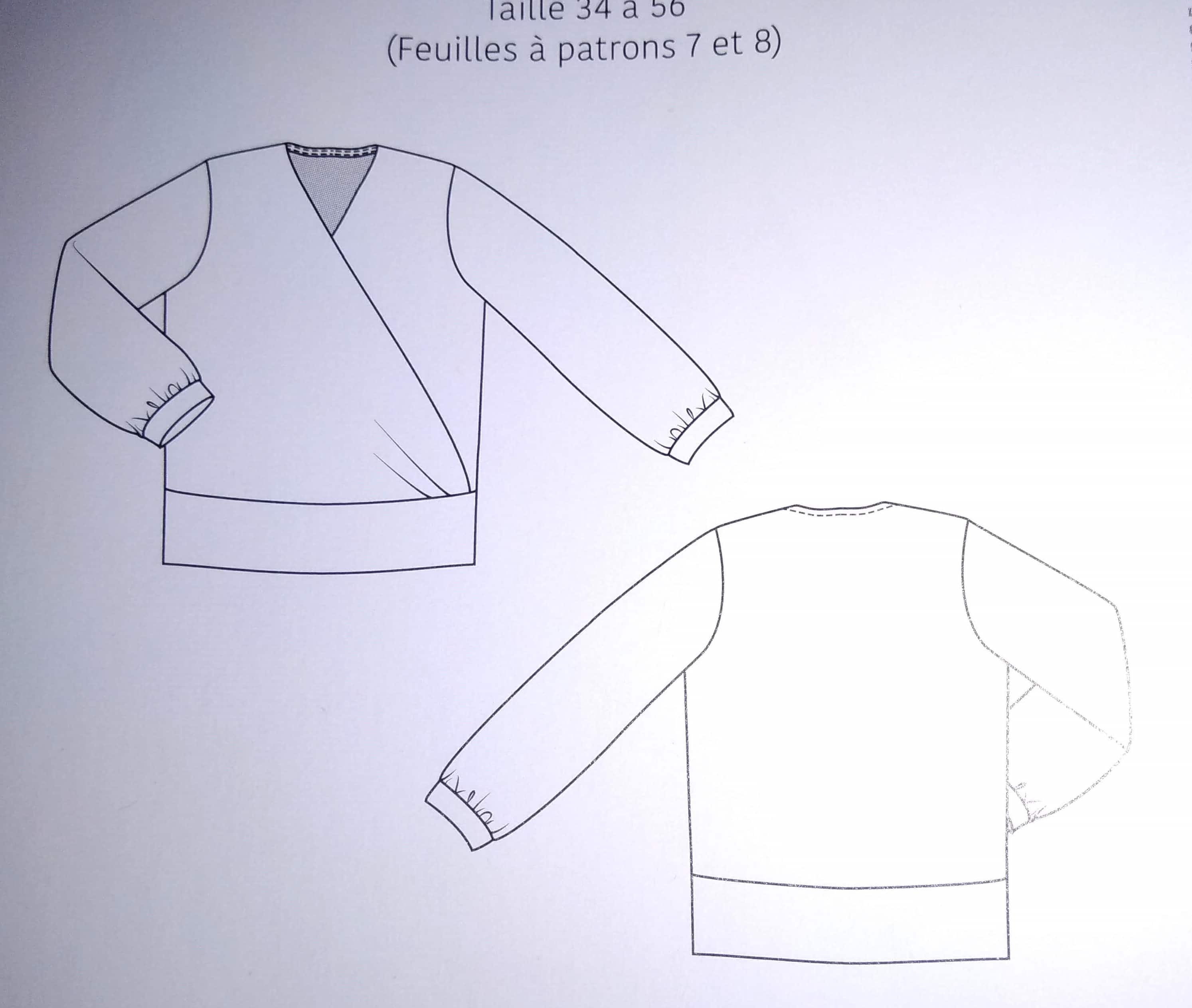 J’adore ce haut de forme cache-coeur. Il est cousu en jersey. Sa forme est assez simple. Les manches longues sont rétrécies à l’aide de fronces dans le bas sur la bande de poignet . Un large empiècement en jersey termine ce chemisier. Il ca de la taille 34 au 56.