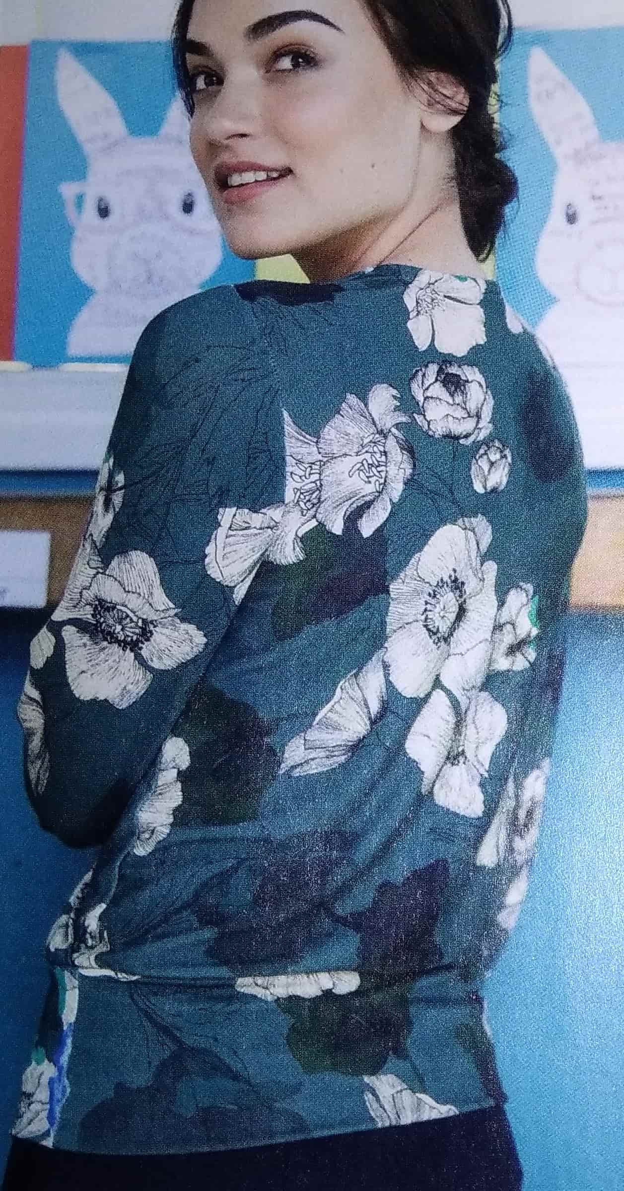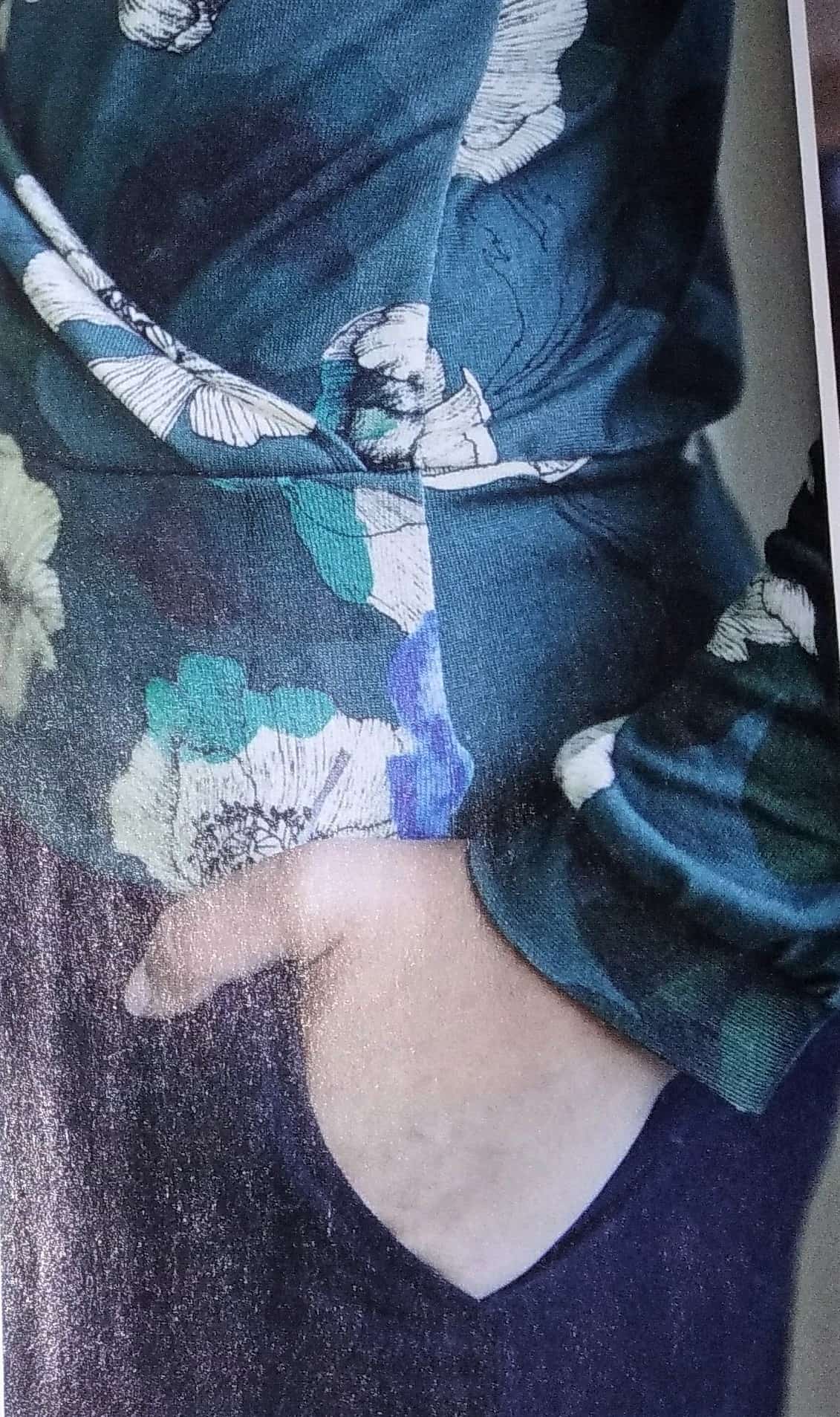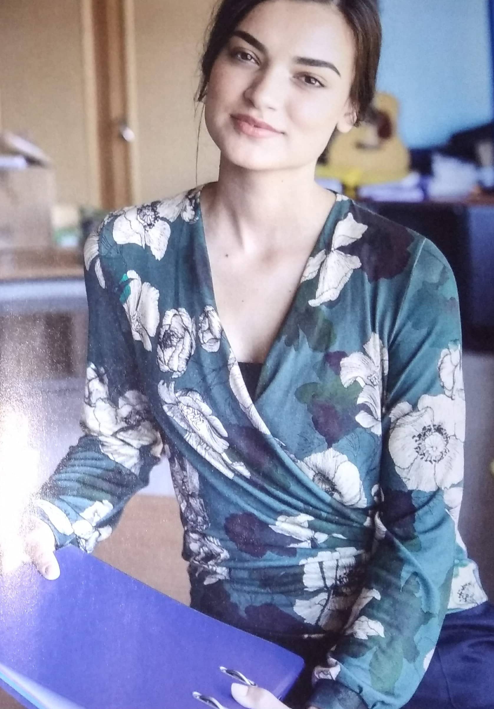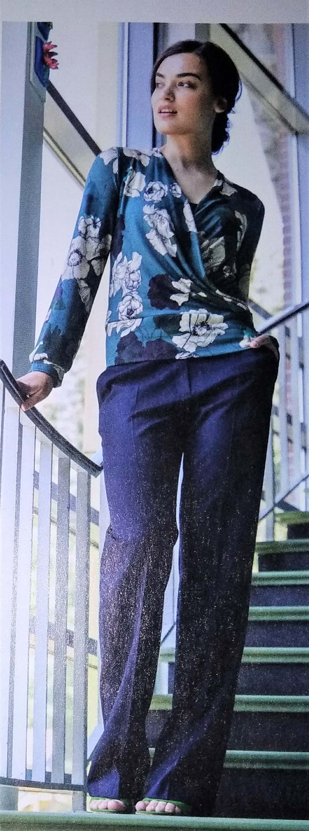 J’adore ce haut de forme cache-coeur. Il est cousu en jersey. Sa forme est assez simple. Les manches longues sont rétrécies à l’aide de fronces dans le bas sur la bande de poignet . Un large empiècement en jersey termine ce chemisier. Il ca de la taille 34 au 56.