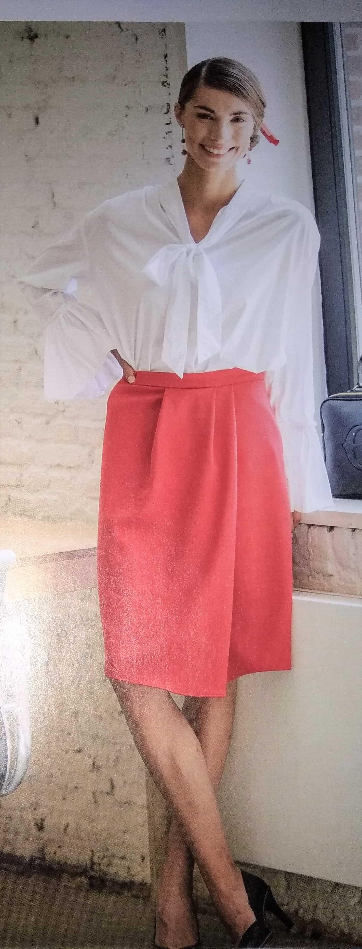 Mon dernier coup de coeur est pour la jupe Kate. Elle se prête à tous les styles. De forme droite elle est habillée d’un jeu de plis qui lui donne un effet portefeuille. Elle va de la taille 30 au 48. C’est dommage car ce modèle conviendrait parfaitement aux femmes rondes aussi.