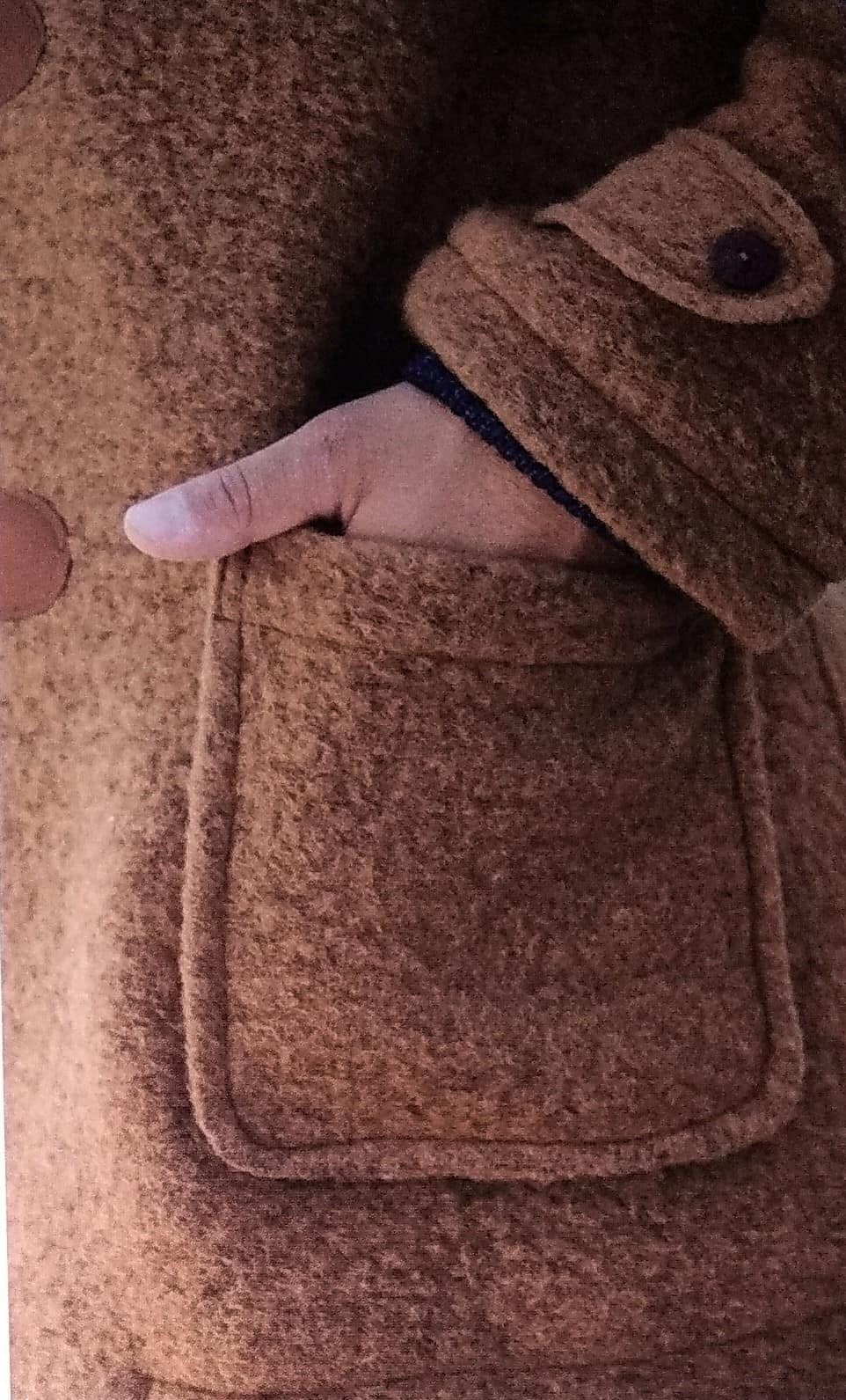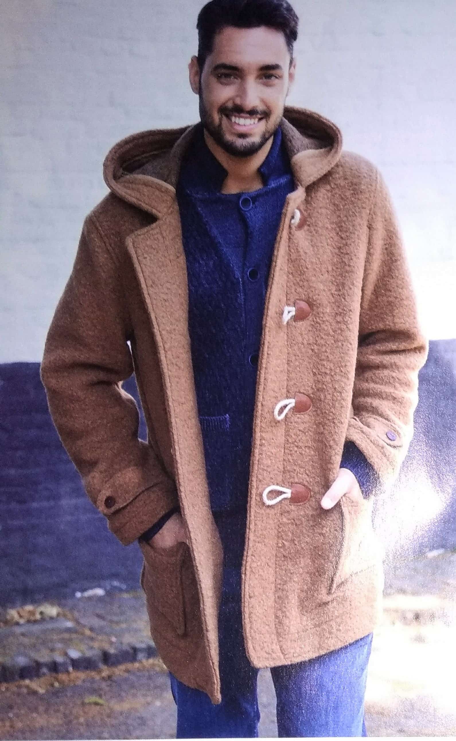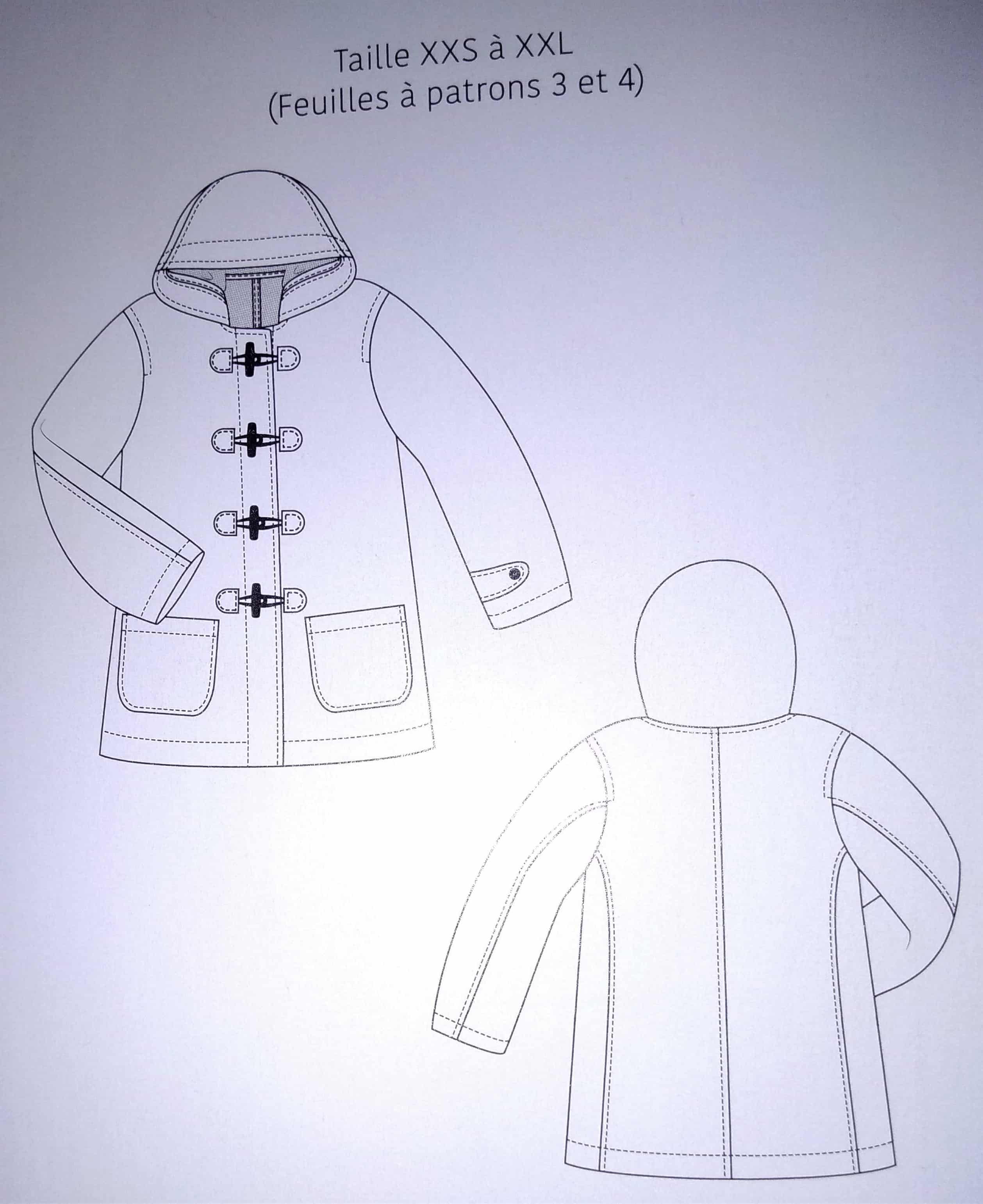 Le vêtement pour homme ce mois ci est un duffle-coat pour homme. Il possède une capuche ainsi que des manches longues terminée par des pattes avec boutons. Une grande capuche et des brandebourgs pour le fermer viennent compléter l’ensemble. Il va du XXS au XXL.