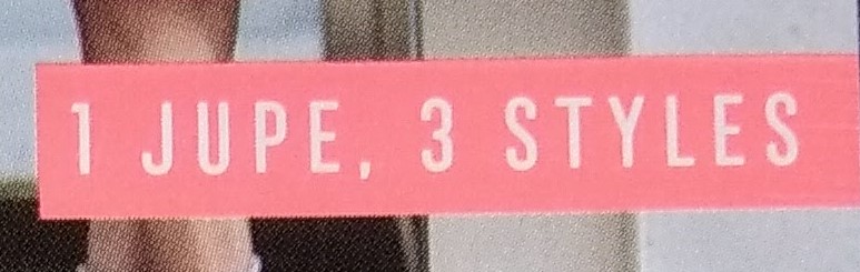 Ce bandeau nous révèle ainsi que la photo, que nous imaginerons des styles complètement différents pour une même jupe.