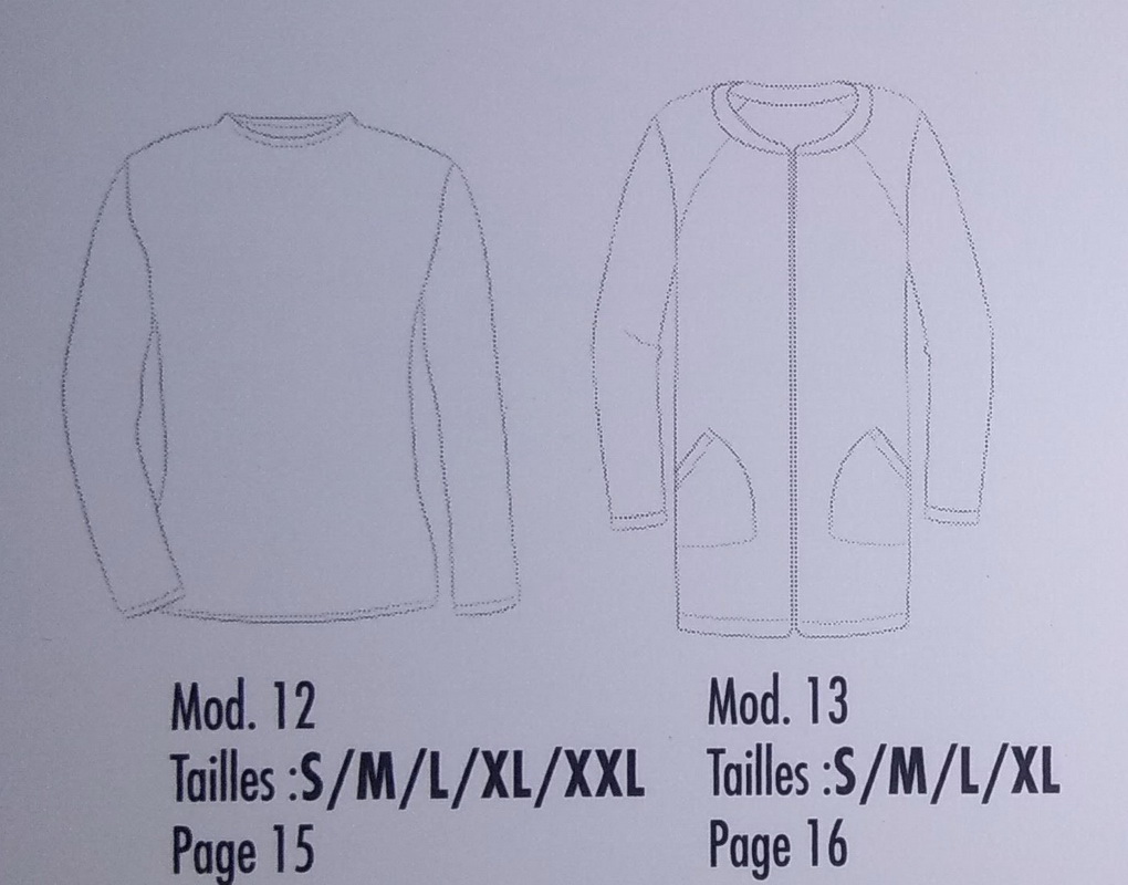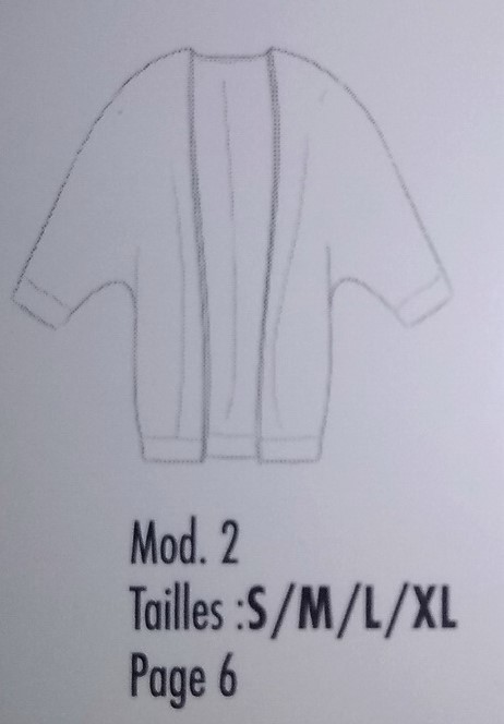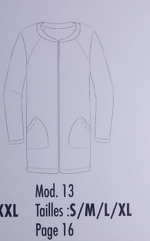 Cette veste longue est sympathique elle aussi. Vous observerez dans le diaporama d’autres variantes en modifiant quelque peu le patron. Cette veste va jusqu’à mi-cuisse. Elle est droite avec des découpes façon raglans et des poches plaquées. Profitez des découpes pour jouer sur les contrastes. Elle est en taille S, M, L et XL.