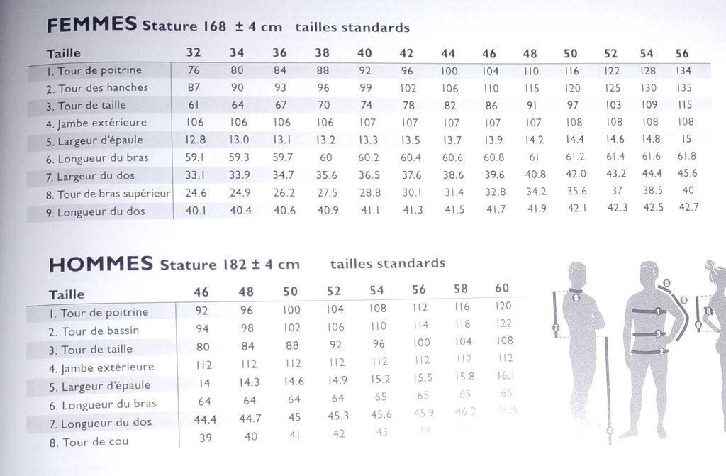 Le tableau des tailles