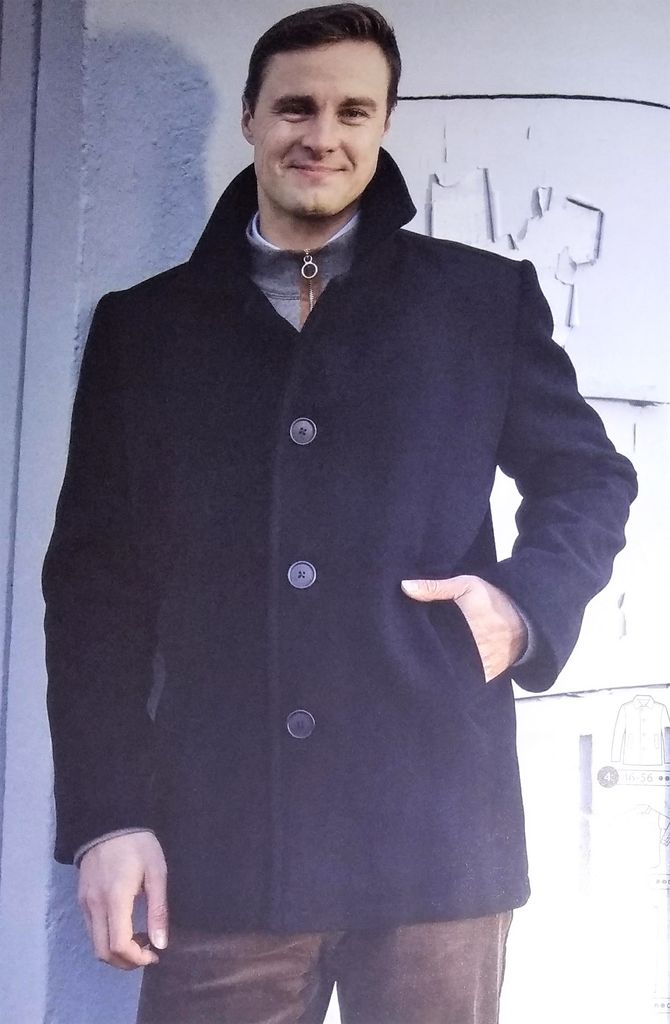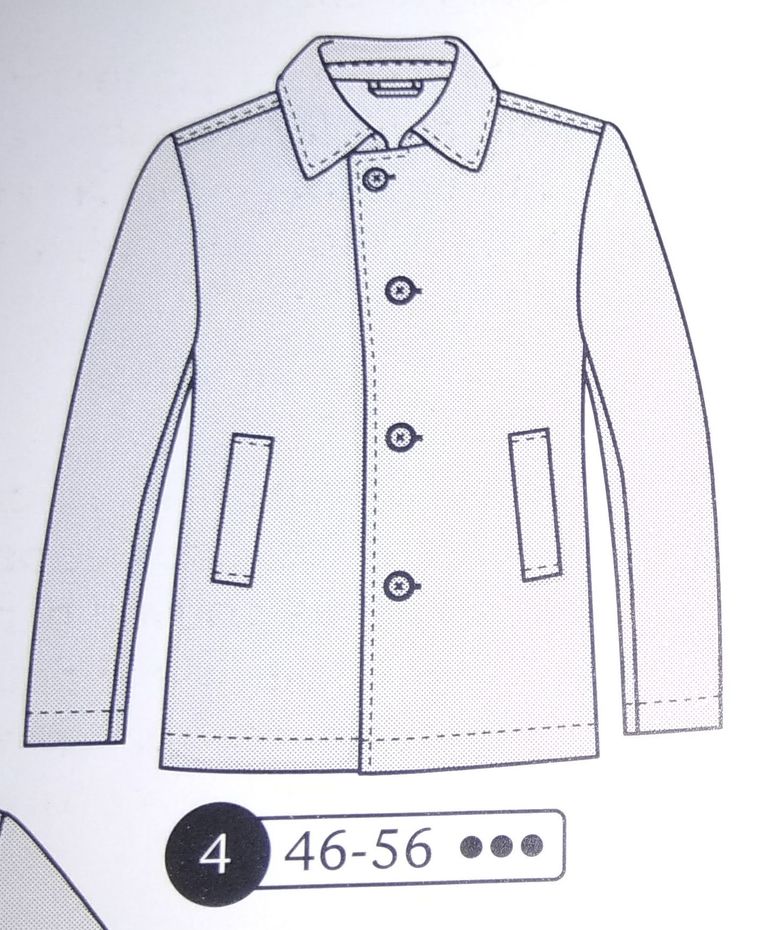 Voici un superbe manteau pour HOMME! En changeant le tissus vous aurez un manteau/blouson pour chaque saison. Il possède un empiècement dans le dos. Les manches sont en deux parties. Des poches à revers viennent habiller le devant, le tuto est sur leur site. Le manteau est à boutonnage simple. Il va de la taille 46 au 56.