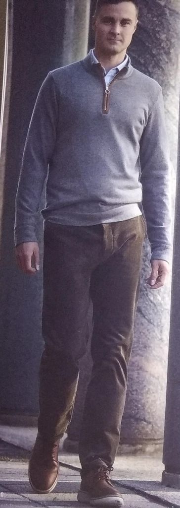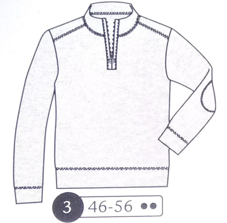 Et voici deux patrons supplémentaires pour homme! Le premier est un pull avec un col montant avec patte zippée. Les manches sont longues, les poignets et les bords d’ourlet sont réalisés dans la même maille que le pull. Le pantalon est réalisé en velours personnellement je le verrai bien en jean. Il possède une braguette boutonnée. Des poches italiennes sur le devant, et des poches passepoilées sur le dos donneront beaucoup d’allure à ce pantalon. Ils vont tous les deux de la taille 46 au 56.