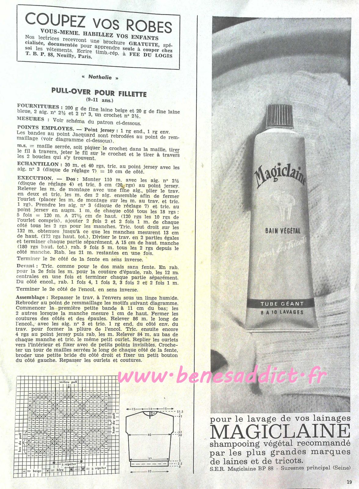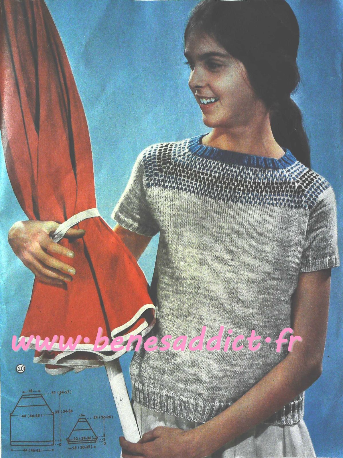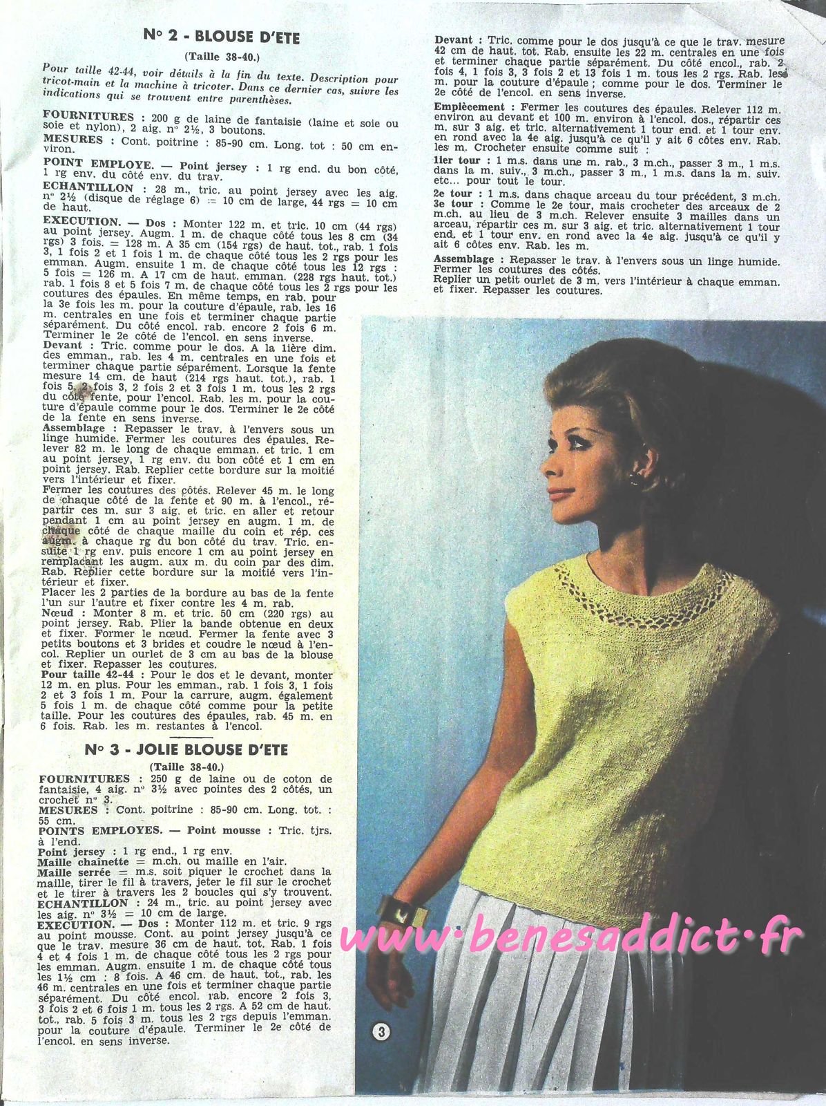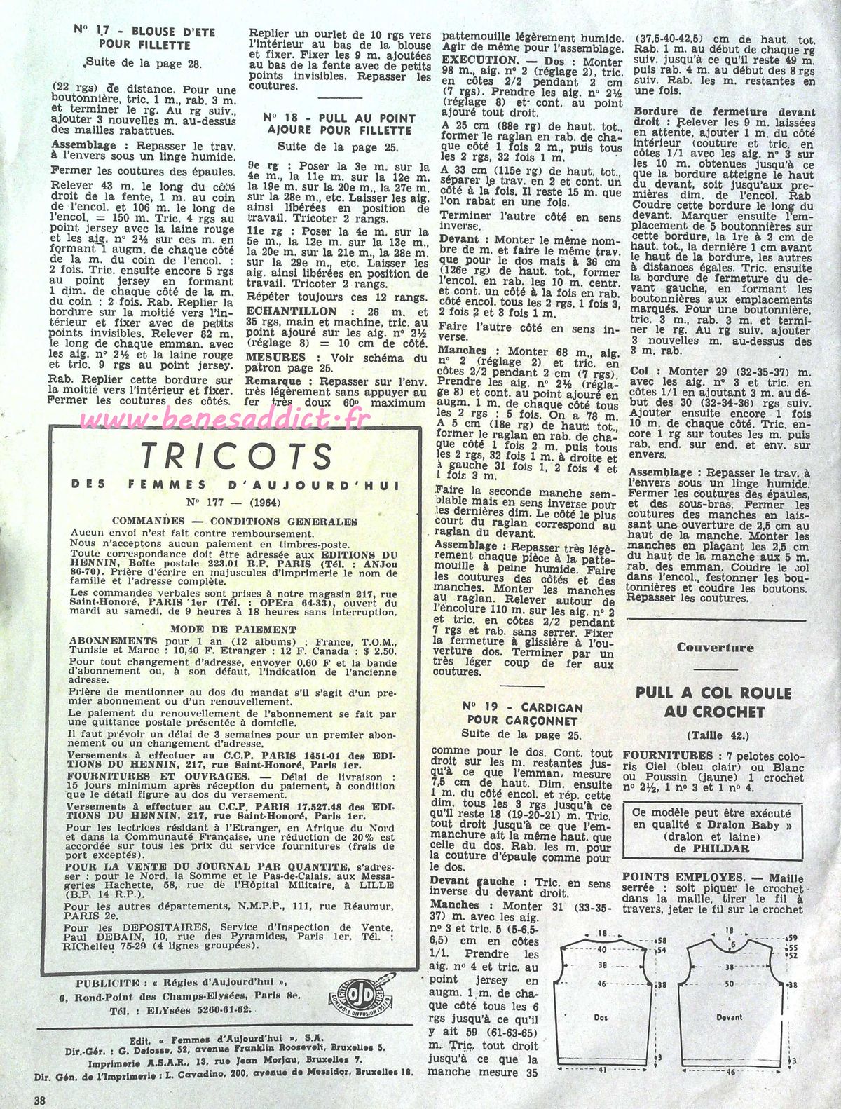 C’est chose faite avec la revue d’aujourd’hui qui contient 30 modèles de tricot/crochet datant des années 60, je n’ai pas la couverture, donc je ne peux pas être plus précise. J’en suis désolée.