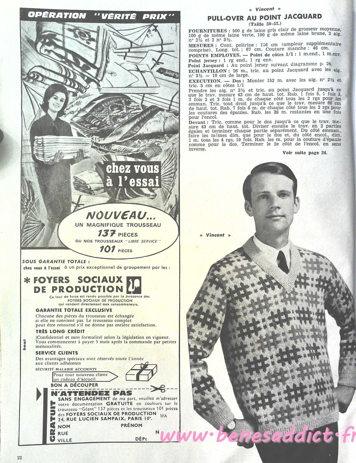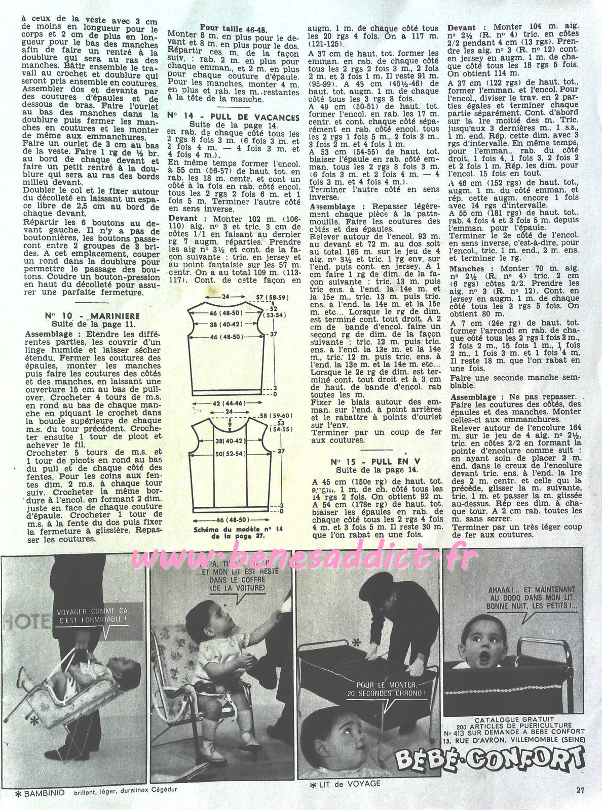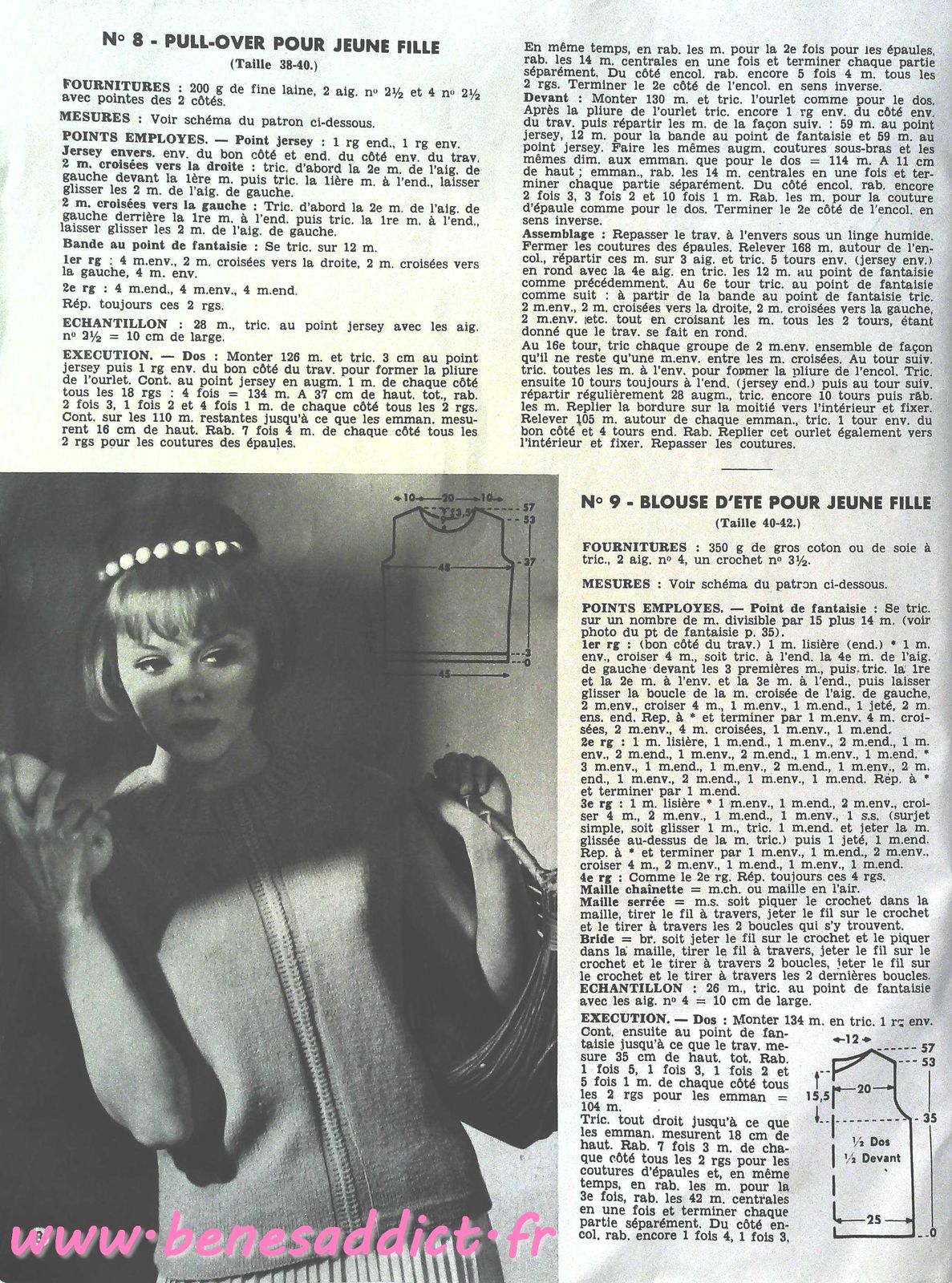 C’est chose faite avec la revue d’aujourd’hui qui contient 30 modèles de tricot/crochet datant des années 60, je n’ai pas la couverture, donc je ne peux pas être plus précise. J’en suis désolée.