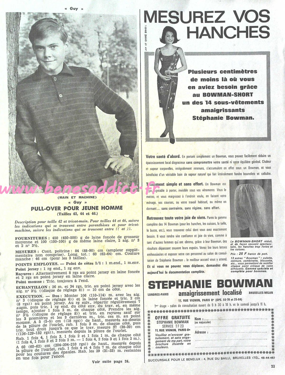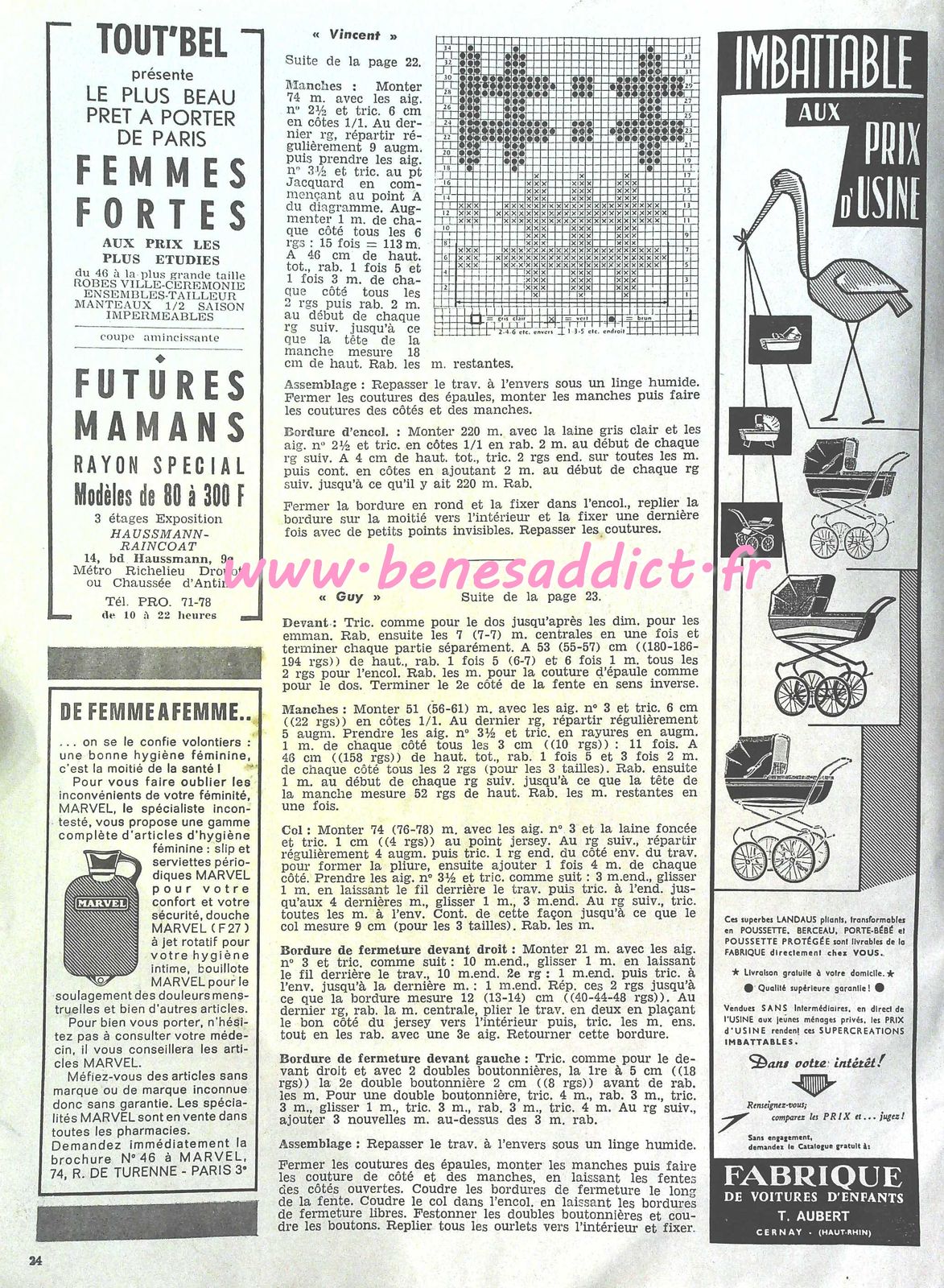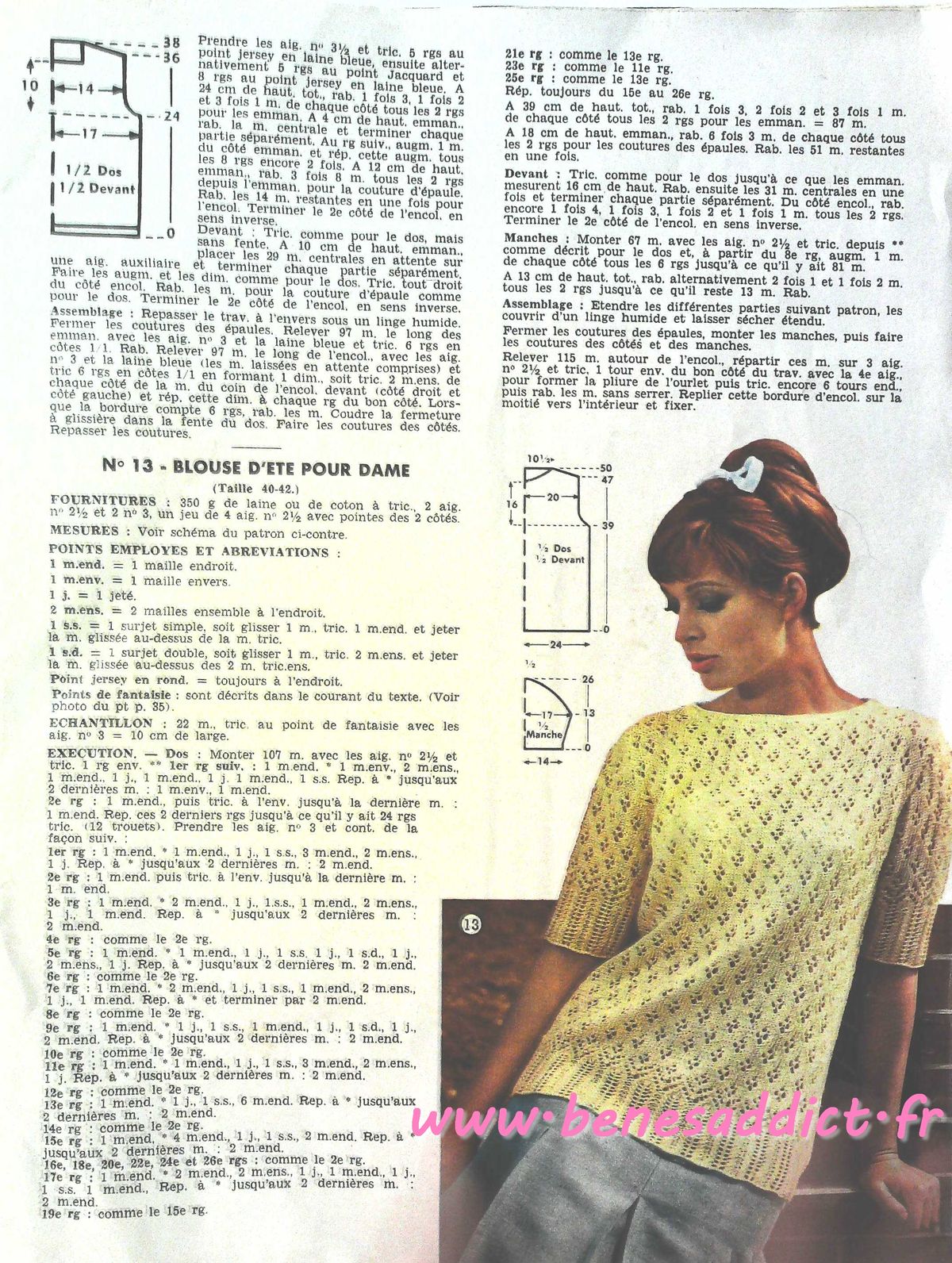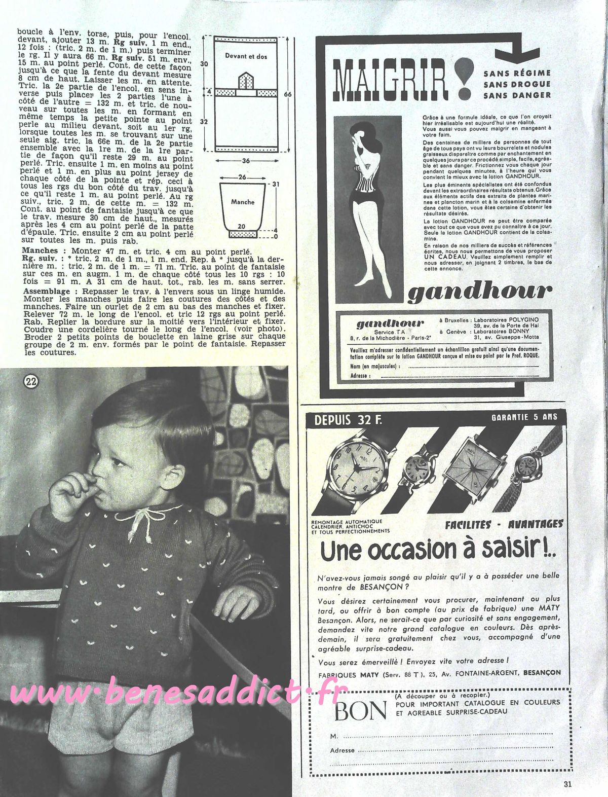 C’est chose faite avec la revue d’aujourd’hui qui contient 30 modèles de tricot/crochet datant des années 60, je n’ai pas la couverture, donc je ne peux pas être plus précise. J’en suis désolée.
