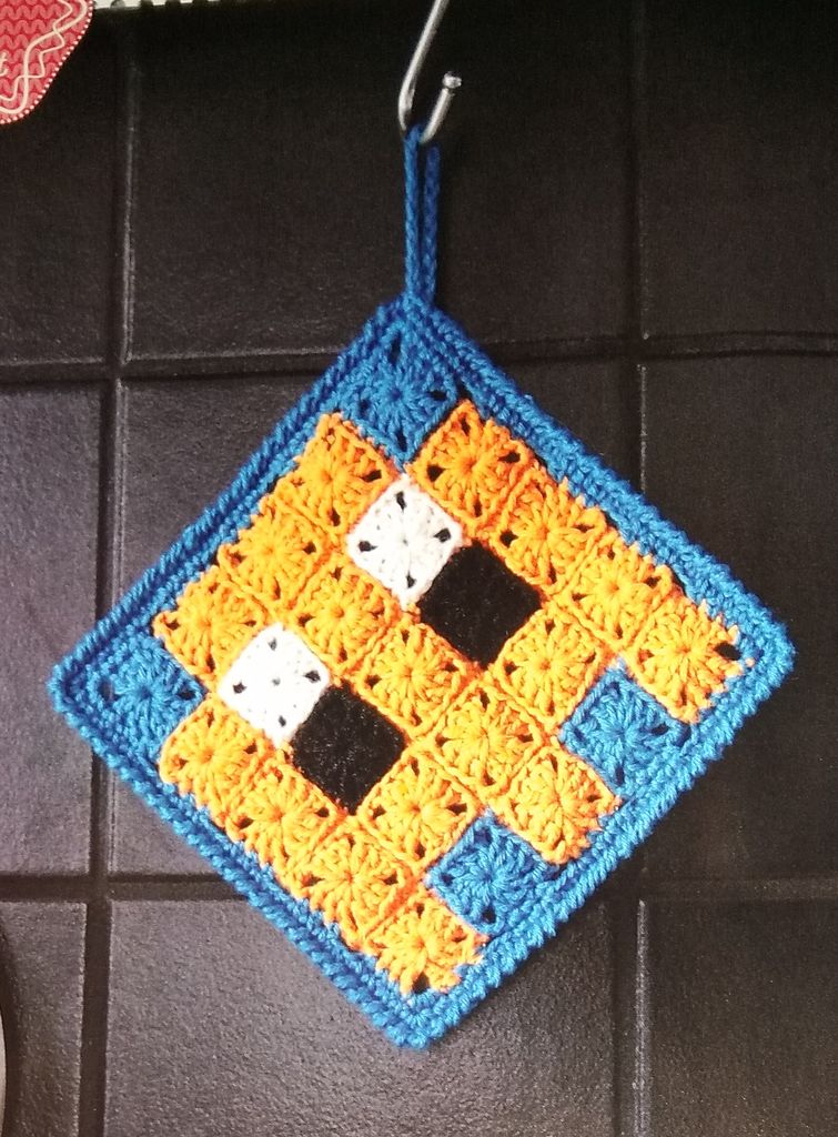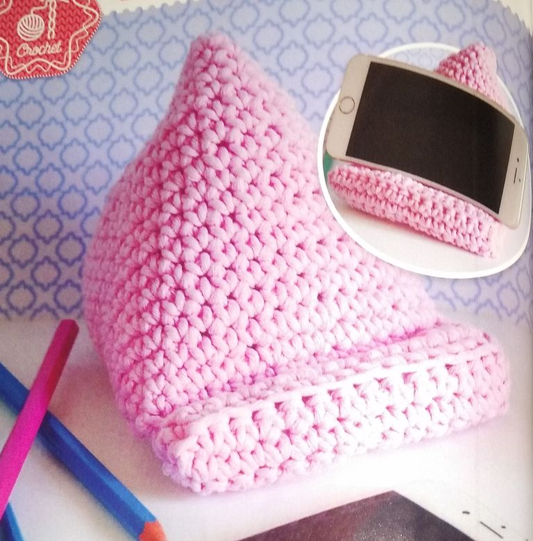 Je pense qu’il y a eu une coquille dans la revue, pour moi c’est un lutrin et non un lutin pour poser un téléphone portable ou une tablette selon la taille. Il est joli crocheté en rose!