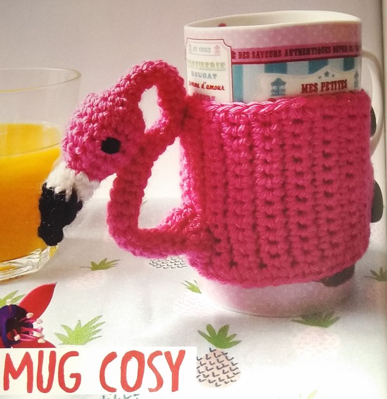Je suis une grande fan des flamants roses, et celui-ci est juste superbe! Il sert à protéger nos petites mains de la chaleur du contenu de notre tasse. Il est réalisé au crochet, et ne présente pas de grandes difficultés.