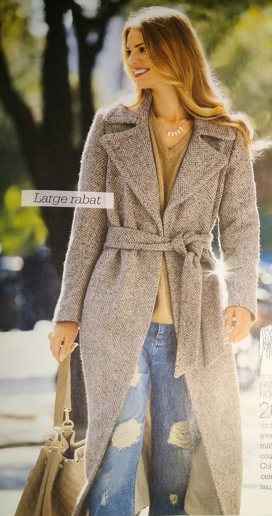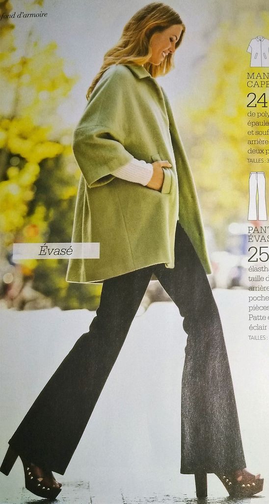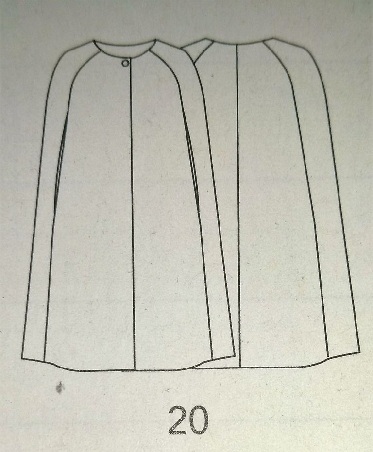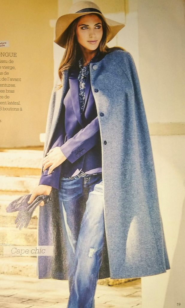 Ce manteau cape est lui aussi superbe, c’est un modèle parfait pour attendre l’arrivée du printemps. Les épaules sont tombante sur des manches courtes. Le col et donc la veste se ferment à l’aide d’un gros bouton. Le dos est orné d’un large soufflet pour plus de confort. Il est en tailles 38 – 42 – 46.