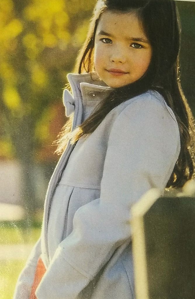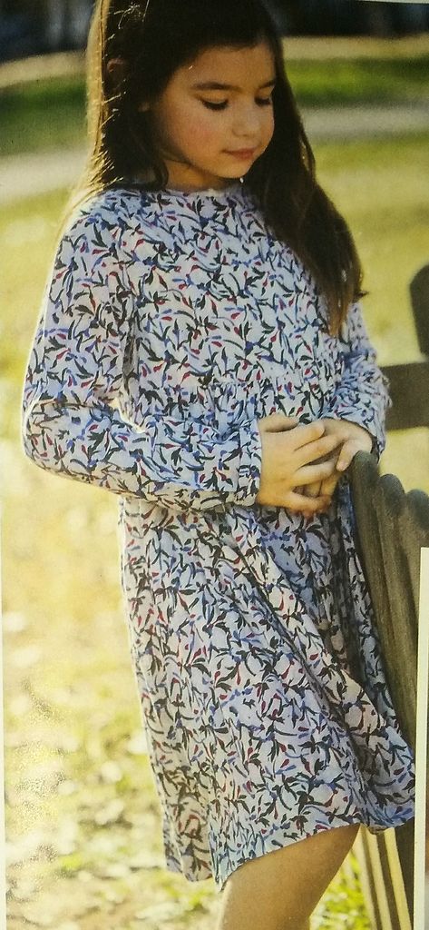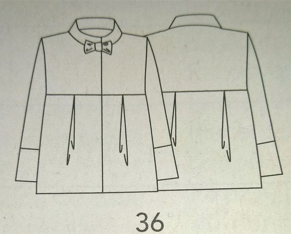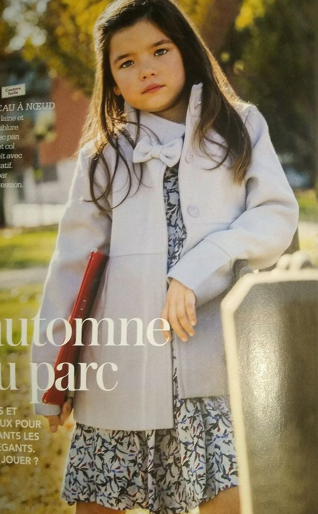 J’adore cette ravissante veste pour petite fille. Elle est estampillée couture facile. Ces manches sont longues avec une bande de tissu rapportée dans le bas. Elle possède un col droit que l’on boutonne. Il est orné d’un petit nœud. Des plis sur les pans du bas donnent l’aisance nécessaire à cette jolie pièce. Elle est en taille 4- 6 – 8 ans.