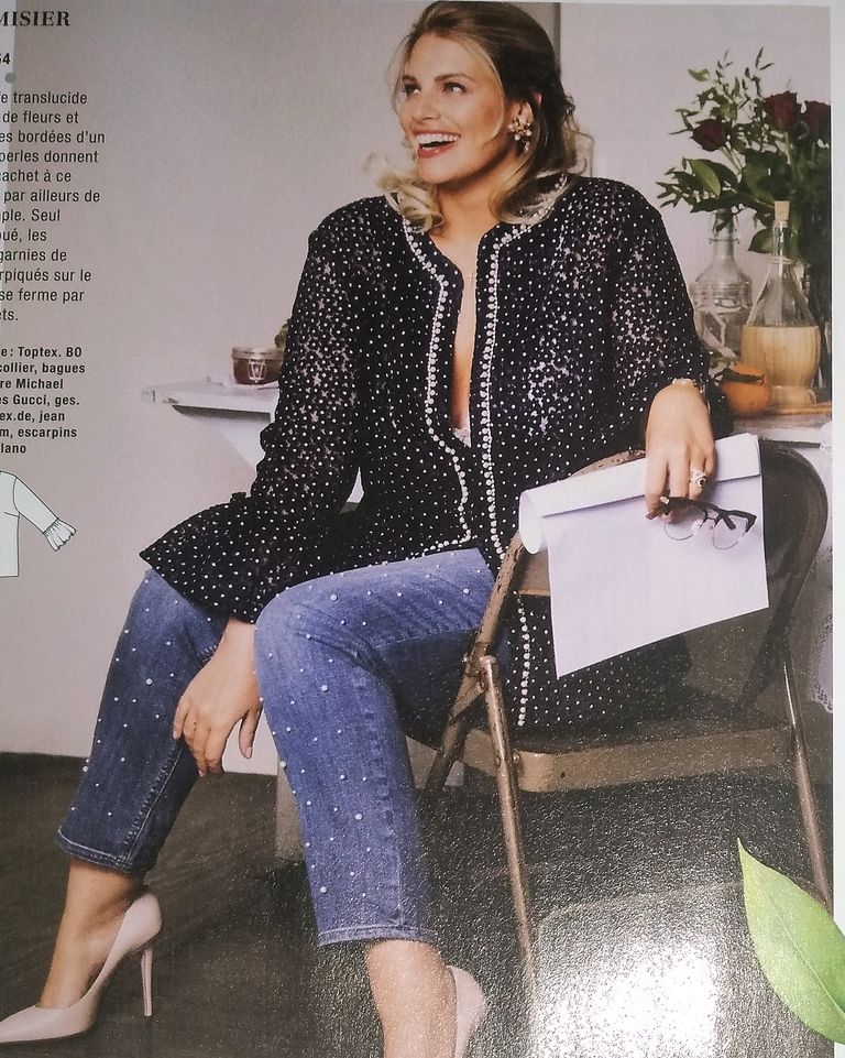 J’adore cette revue, je suis rarement déçue. Ce numéro contient 37 patrons en tailles 44 au 54. Tous n’iront pas au 54, mais ils vont tous jusqu’au 52.