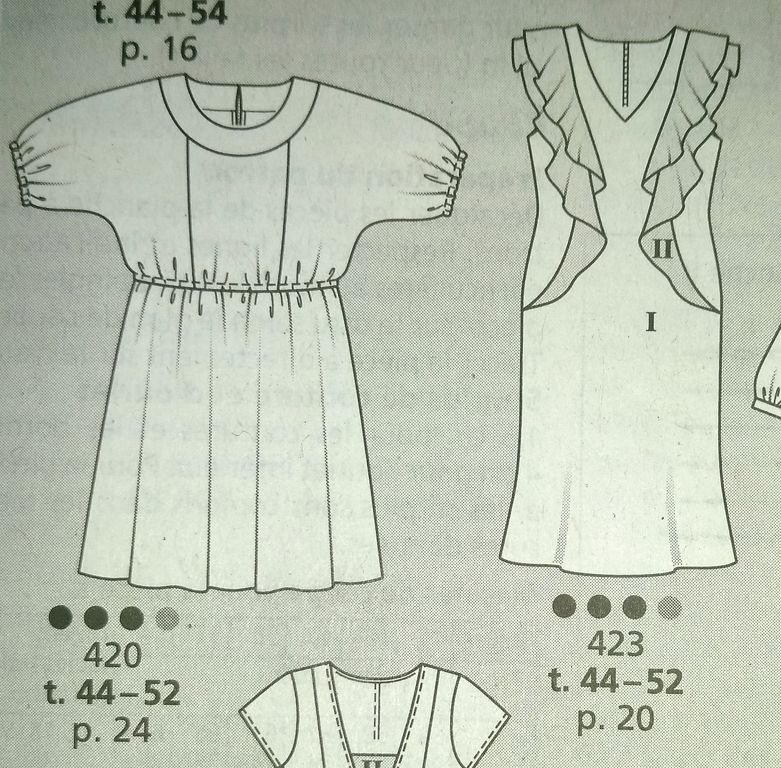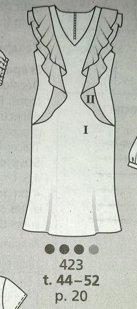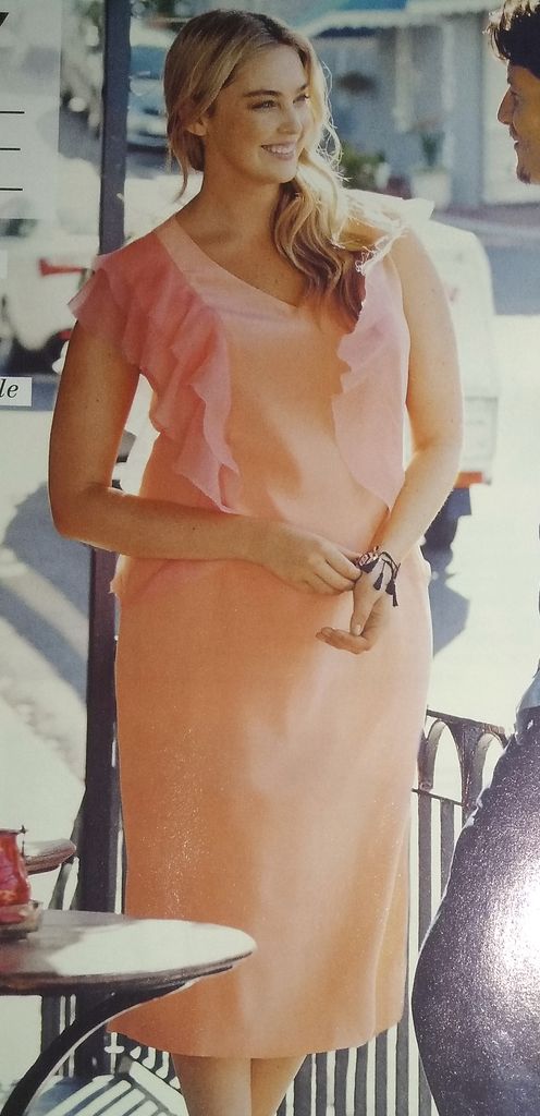 Mon dernier coup de cœur est pour une robe, oui encore. Elle est simple relativement, son encolure est en V. Deux rangées de volants verticaux partent des épaules en cascades pour finir sur les hanches. Elle va de la taille 44 au 52.