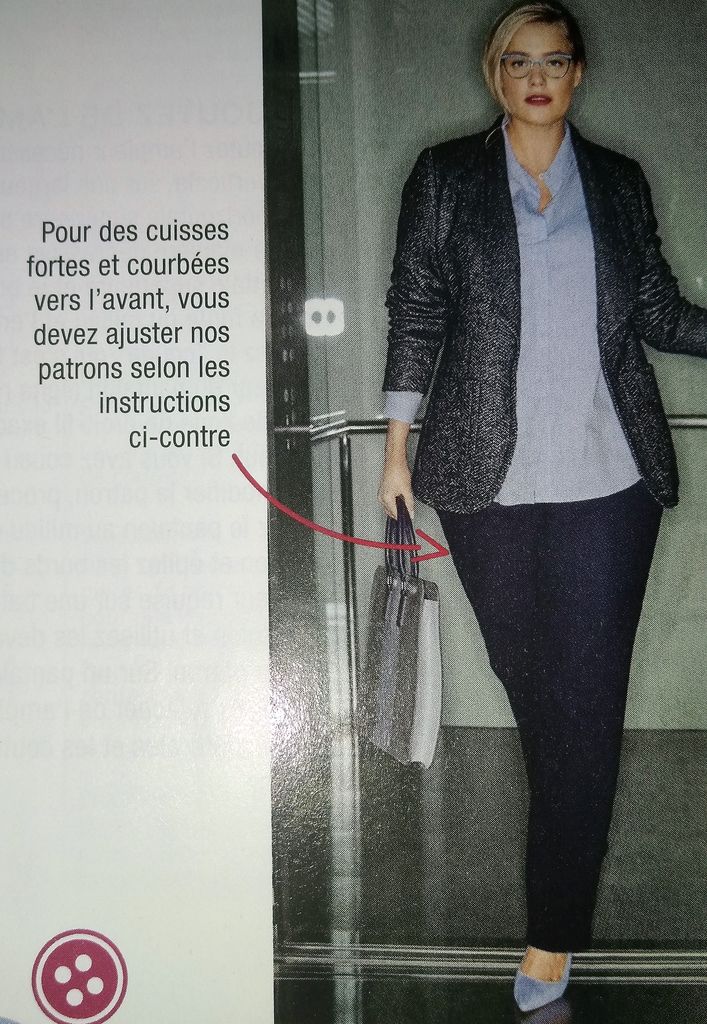 Les coupes sont étudiées pour les grandes tailles, afin d’avoir un seyant parfait. En plus nous aurons aussi un tuto pour modifier un patron de pantalon, en cas de cuisses fortes.