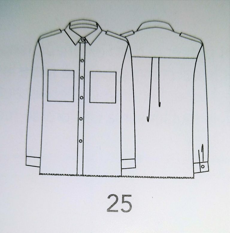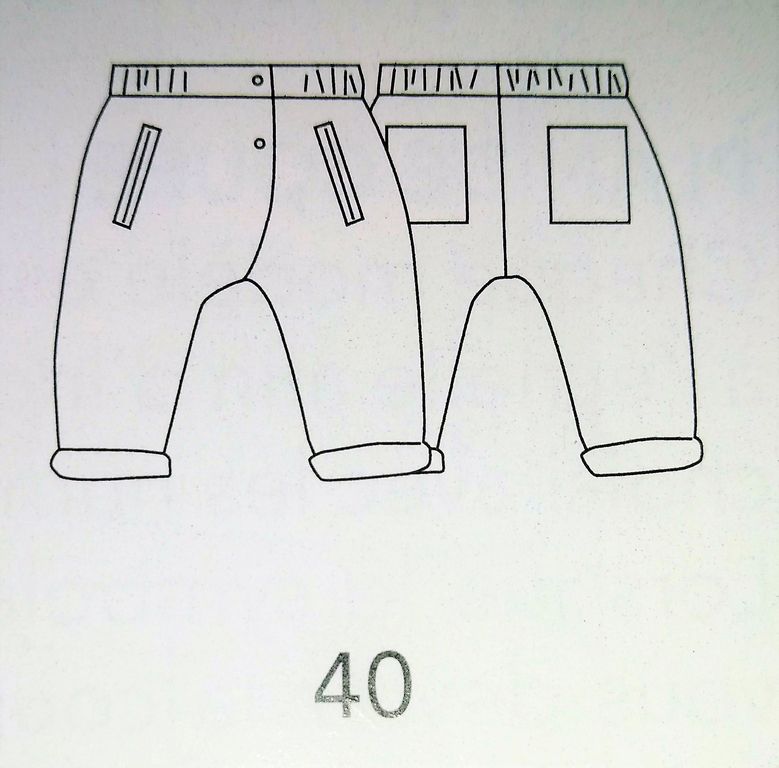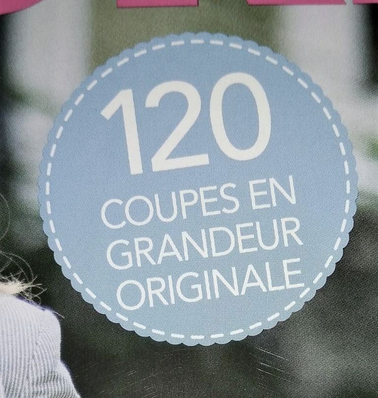 Ce macaron indique qu’il y a un total de 140 patrons toutes tailles comprises. En sachant que chaque vêtement est en 3 tailles, nous avons 40 patrons.