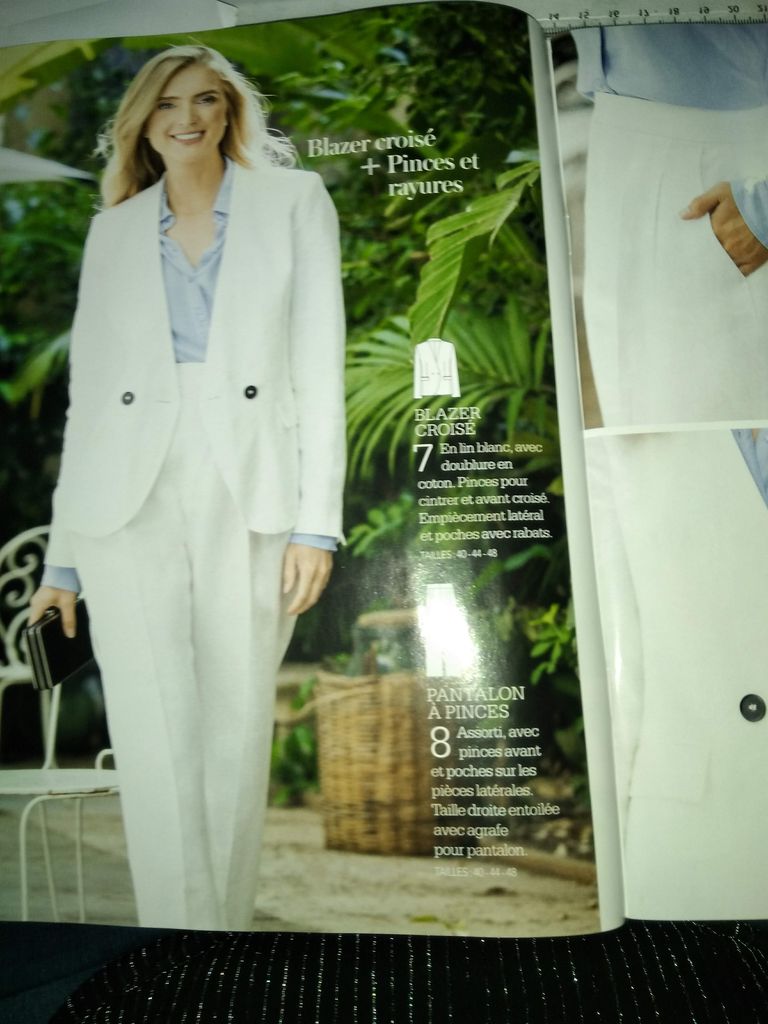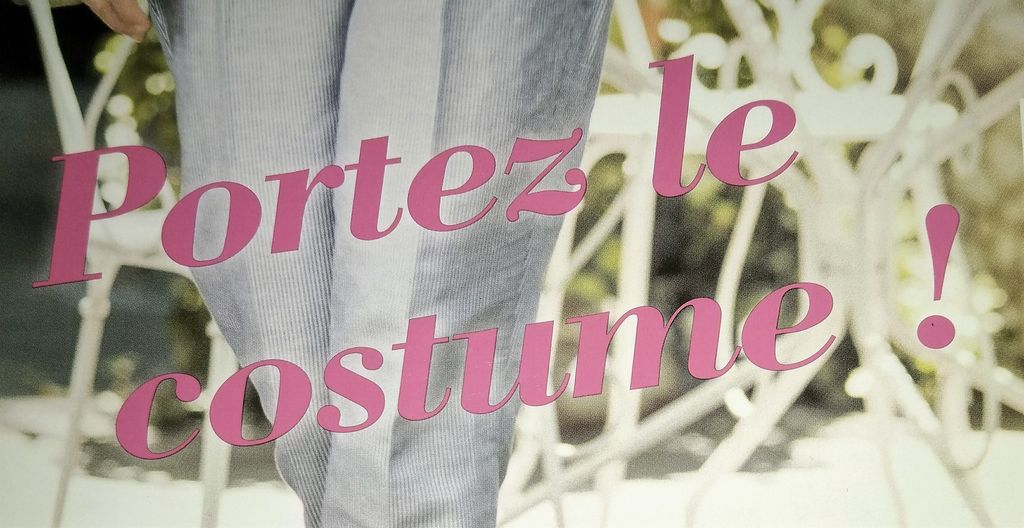 « Couture Actuelle » est l’édition française de la revue Espagnole « Patrones ». Ce titre portez le costume, est je pense une mauvaise traduction, c’est plutôt, un tailleur, voire même un costume tailleur.