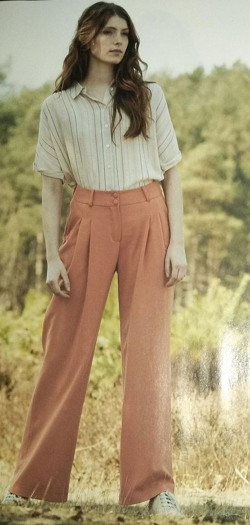 C’est tout d’abord la couleur qui m’a attirée pour ce pantalon ample. Généralement, je ne suis pas fan des pantalons à pinces. Mais ici, Les plis démarrent bas sous la taille, et c’est génial pour camoufler le ventre. Il possède une large ceinture à passants, des poches italiennes. Les tailles vont du 34 au 56.