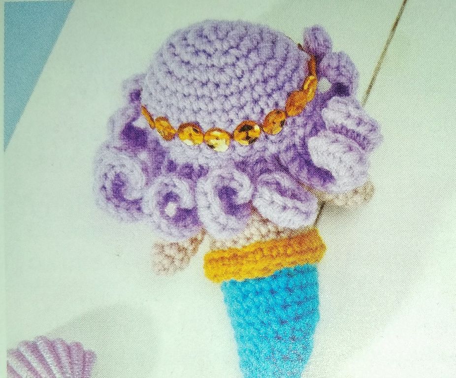 Je suis une grande fan des amigurumis! Une grande dame m’a d’ailleurs offert une pieuvre toute mignonne et rose. Ici nous avons une ravissante sirène toute en douceur. Deux sequins en forme de coquillage cache la poitrine et un bandeau de sequins orne sa chevelure.