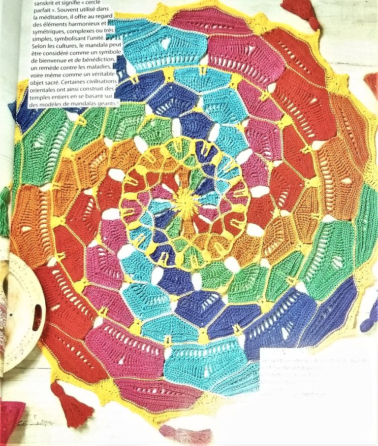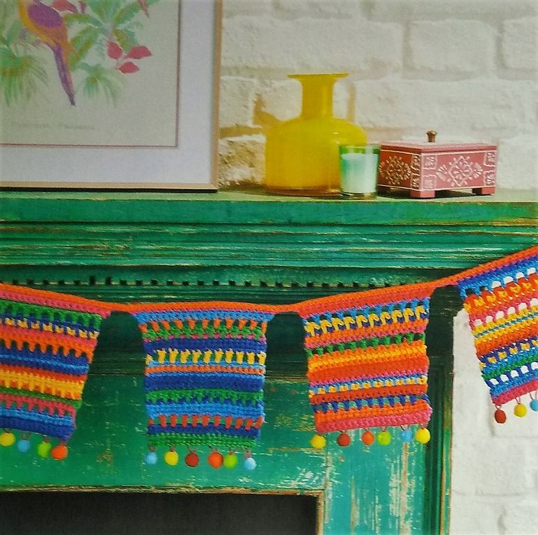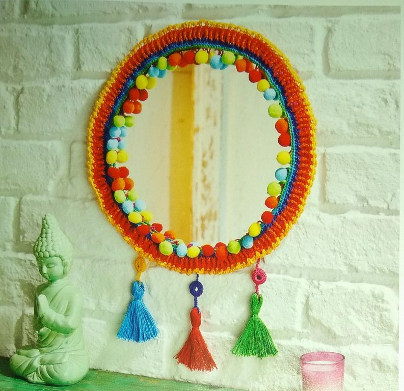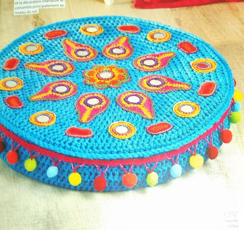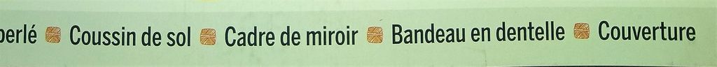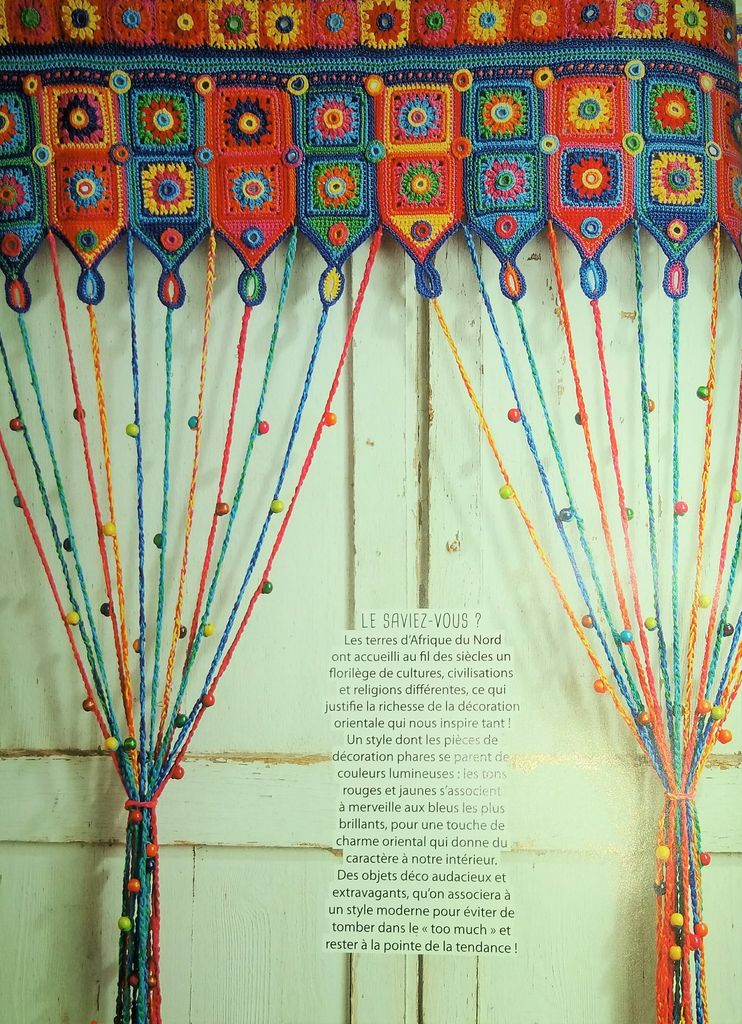 Ce bandeau nous résume le contenu de la revue. Vous trouverez un rideau perlé, un joli coussin de sol, un cadres de miroir, un bandeau en dentelle, une couverture sous forme de CAL. Mais ce n’est pas tout!
