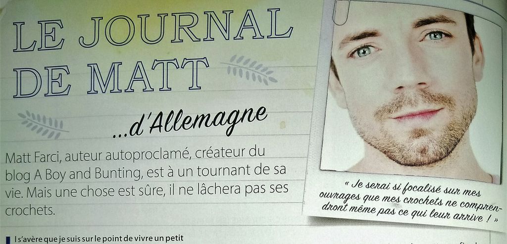 J’ai découvert un blogueur homme qui fait du crochet! Il s’agit de Matt Farci du blog A boy and Bunting.