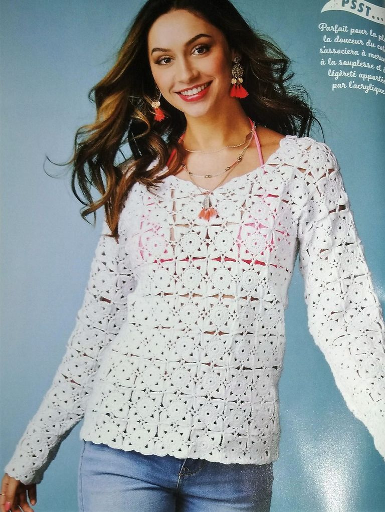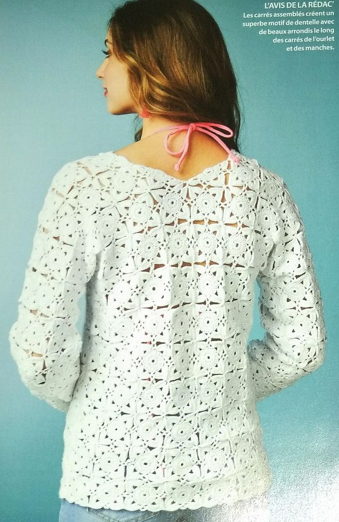 Ce top en dentelle est du plus bel effet. c’est une succession de carrés assemblés les uns aux autres. Perso je n’aime pas ce système mais je trouve le résultat très sympa.
