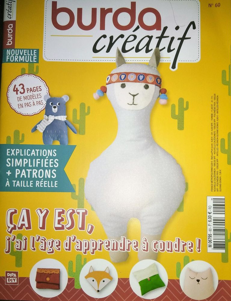 La nouvelle formule du « Burda créatif » parait dorénavant tous les deux mois, personnelement j’adore, ça change des vêtements! Celui ci est plus particulièrement dédié aux enfants qui désirent apprendre à coudre. C’est le moment de profiter des grandes vacances pour les aider à se lancer.