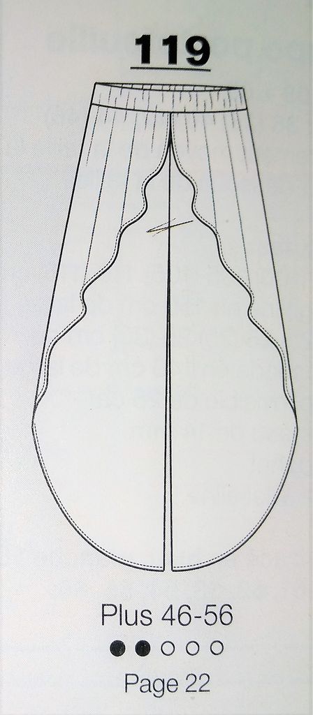 Je vais être honnête ce « pantalon » est dans mon top pour son originalité. En effet je ne sais pas si j’aime ou déteste. Il est composé de deux morceaux qui sont joints uniquement à la couture d’enfourchure et à la ceinture élastiquée. Chaque morceau s’enroule sur la jambe. Il va de la taille 46 au 56!